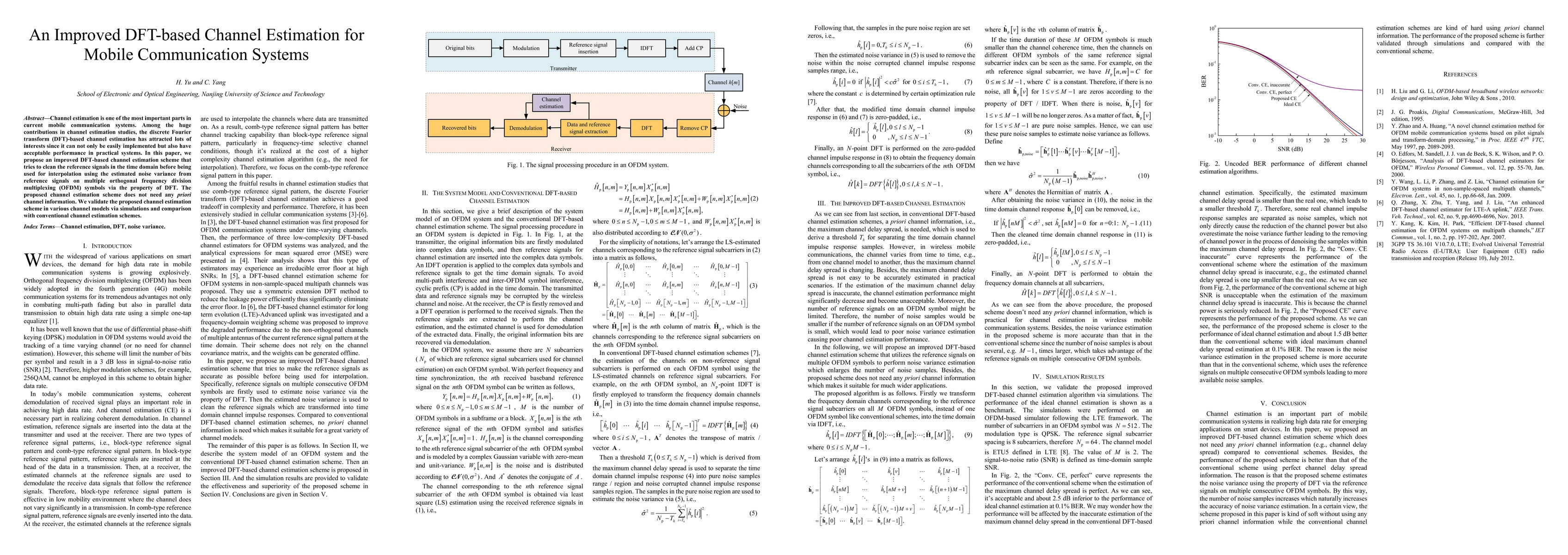 This paper proposes an enhanced DFT-based channel estimation method for mobile communication systems that cleans reference signals in the time domain before interpolation, leveraging estimated noise variance across multiple OFDM symbols. The scheme does not require prior channel information and is validated through simulations comparing its performance against conventional methods.
