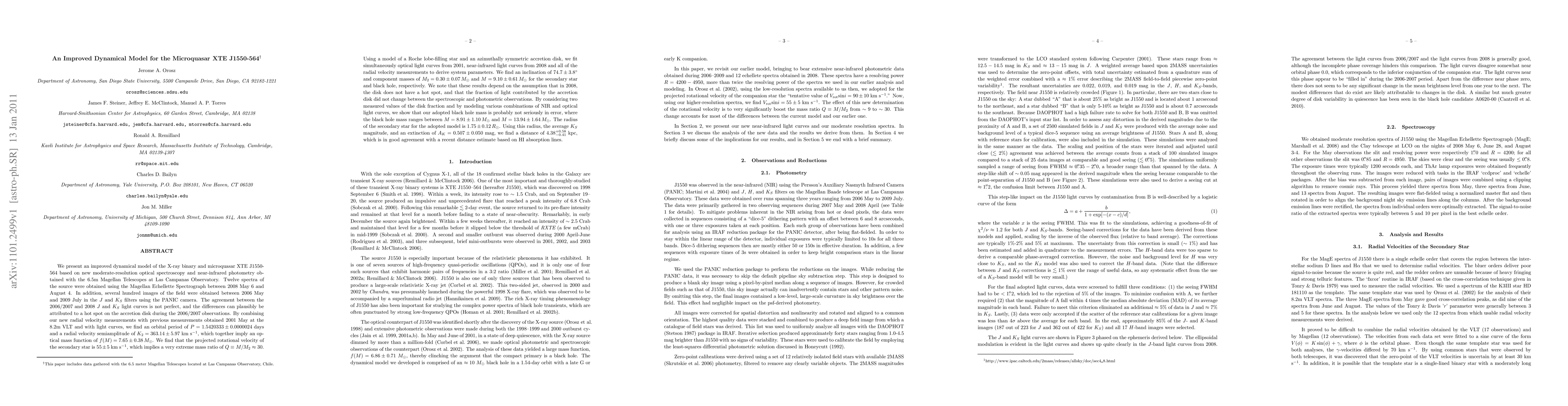 We present an improved dynamical model of the X-ray binary and microquasar XTE J1550-564 based on new moderate-resolution optical spectroscopy and near-infrared photometry. By combining our new radial velocity measurements with previous measurements obtained 2001 May at the 8.2m VLT and with light curves, we find an orbital period of P=1.5420333 +/- 0.0000024 days and a radial velocity semiamplitude of K_2=363.14 +/- 5.97$ km/sec, which together imply an optical mass function of f(M)=7.65 +/- 0.38 solar masses. We find that the projected rotational velocity of the secondary star is 55 +/- 5 km/sec, which implies a very extreme mass ratio of Q=M/M_2=30. Using a model of a Roche lobe-filling star and an azimuthally symmetric accretion disk, we fit simultaneously optical light curves from 2001, near-infrared light curves from 2008 and all of the radial velocity measurements to derive system parameters. We find an inclination of 74.7 +/- 3.8 deg and component masses of M_2=0.30 +/- 0.07 solar masses and M=9.10 +/- 0.61 solar masses for the secondary star and black hole, respectively. The radius of the secondary star for the adopted model is 1.75 +/- 0.12 solar radii. Using this radius, the average K_S magnitude, and an extinction of A_K=0.507 +/- 0.050 mag, we find a distance of 4.38^{+0.58}_{-0.41} kpc, which is in good agreement with a recent distance estimate based on HI absorption lines (abstract shortened).
