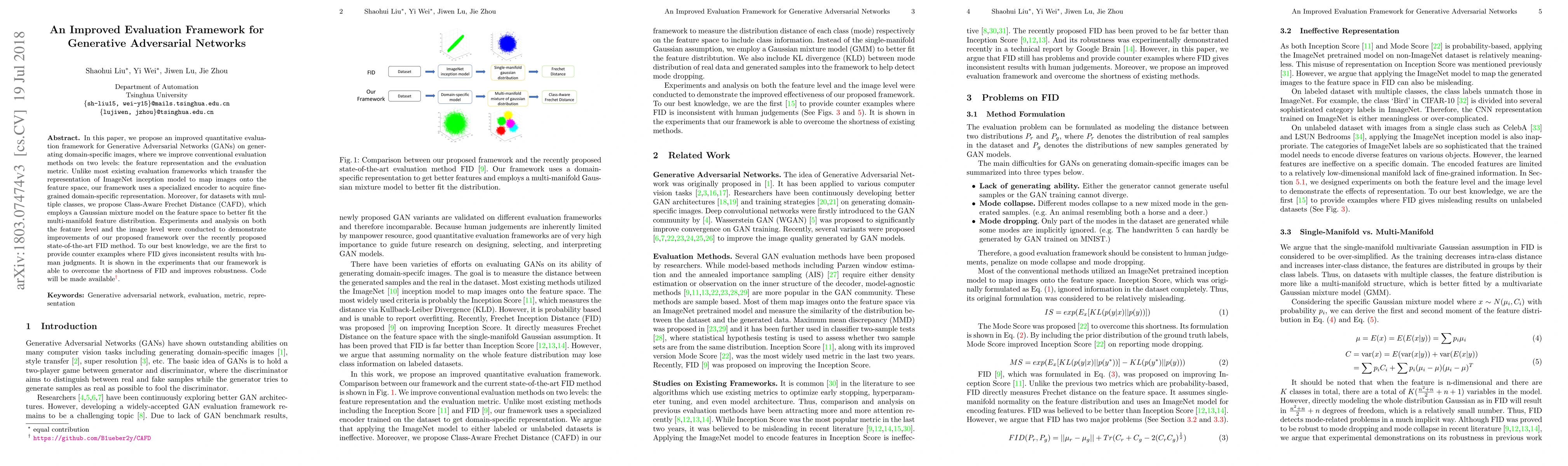 This paper proposes an improved evaluation framework for Generative Adversarial Networks (GANs) that uses a specialized encoder to acquire fine-grained domain-specific representation and improves the robustness of existing methods.