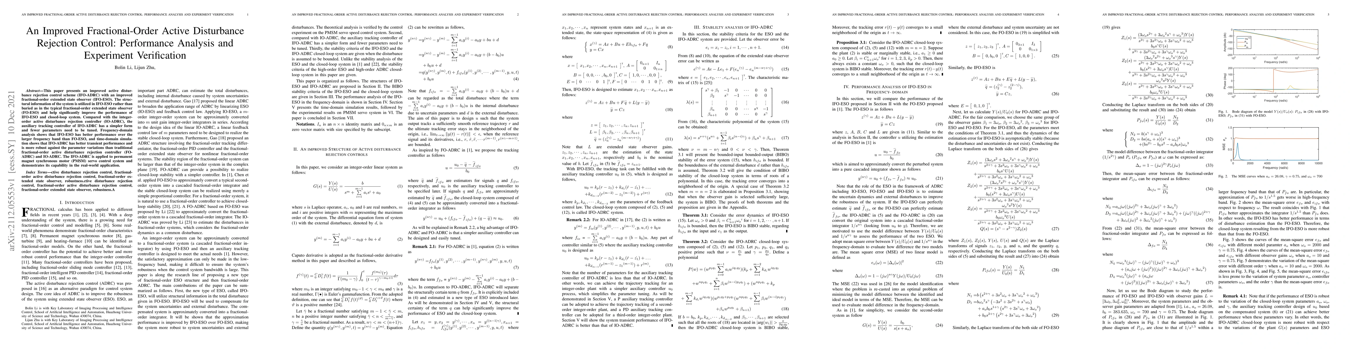 The proposed method combines the benefits of fractional-order control with advanced disturbance rejection techniques, offering a novel solution for improving system stability and performance.