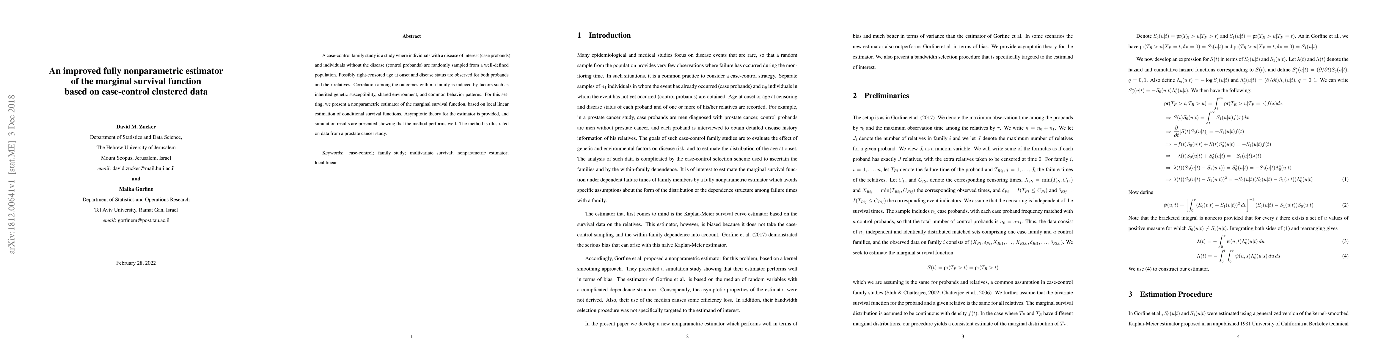 This paper introduces a new nonparametric estimator for the marginal survival function in case-control family studies, employing local linear estimation of conditional survival functions. The method is shown to perform well through asymptotic theory and simulation results, and is demonstrated using prostate cancer study data.
