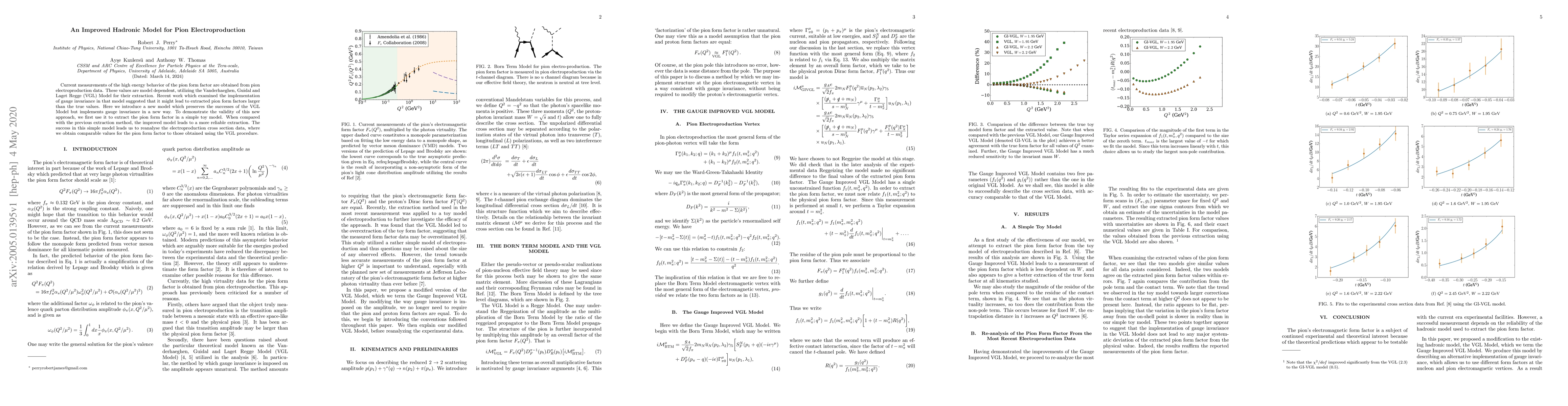 This paper presents an improved hadronic model for pion electroproduction, addressing gauge invariance issues in the VGL Model. The new model, validated through a toy model, provides more reliable pion form factor extraction, yielding comparable results to the VGL procedure when applied to electroproduction cross-section data.