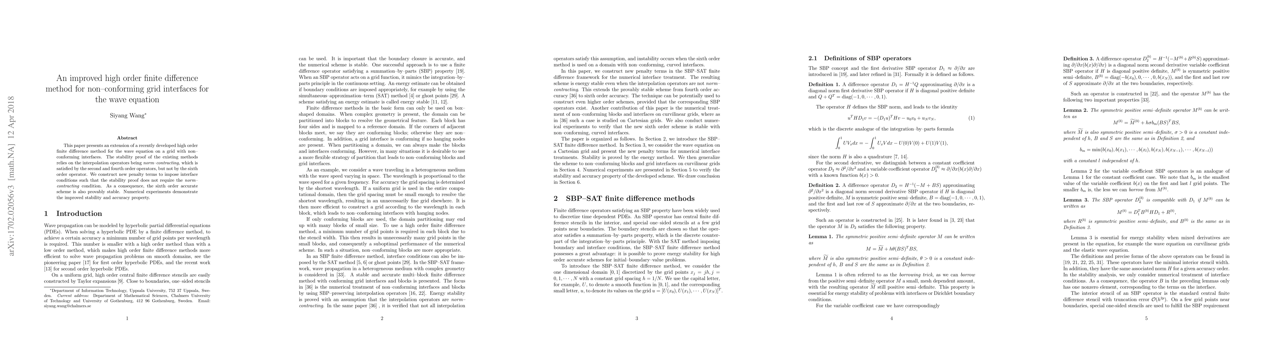 This paper develops a high order finite difference method for the wave equation on non-conforming grids, introducing new penalty terms to maintain stability without requiring norm-contracting interpolation operators, thus enabling a stable sixth-order accurate scheme. Numerical results show enhanced stability and accuracy.