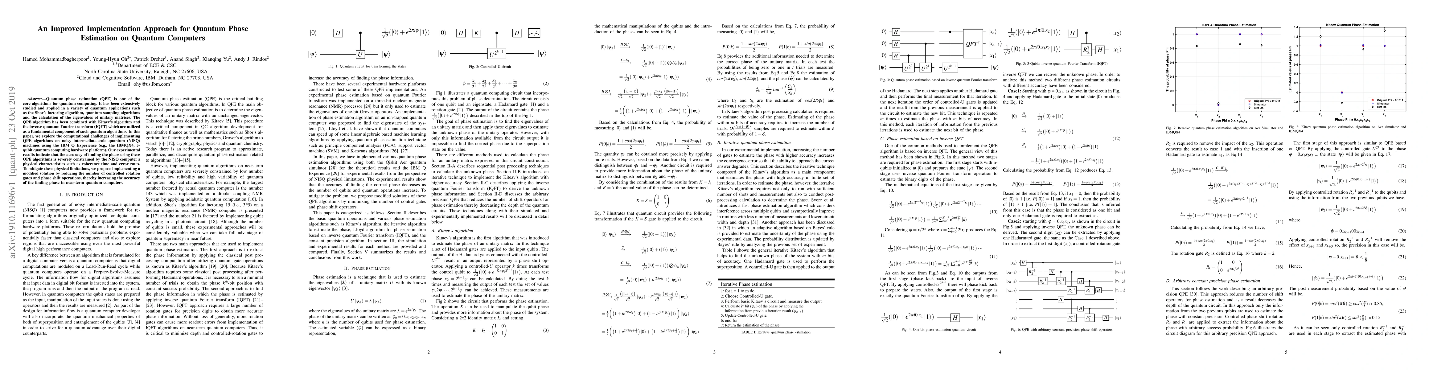 This paper investigates the implementation challenges of quantum phase estimation (QPE) on noisy intermediate-scale quantum (NISQ) computers, highlighting the impact of coherence time and error rates. It proposes a modified QPE algorithm that reduces controlled rotation gates and phase shifts to improve accuracy on near-term quantum hardware.