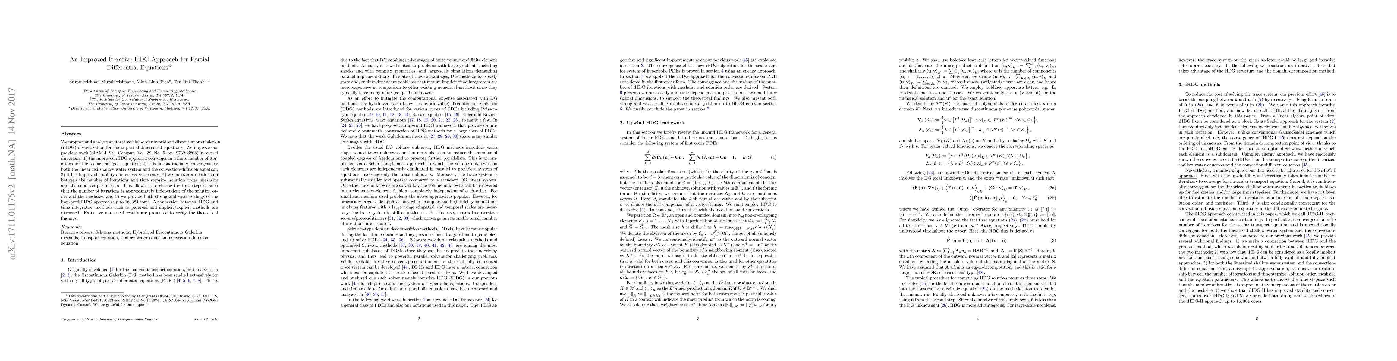 This paper introduces an enhanced iterative high-order hybridized discontinuous Galerkin (iHDG) method for solving linear partial differential equations, demonstrating improved convergence, stability, and scalability. The method is shown to be unconditionally convergent and provides a relationship to optimize iteration counts, ensuring efficiency across various computational parameters.