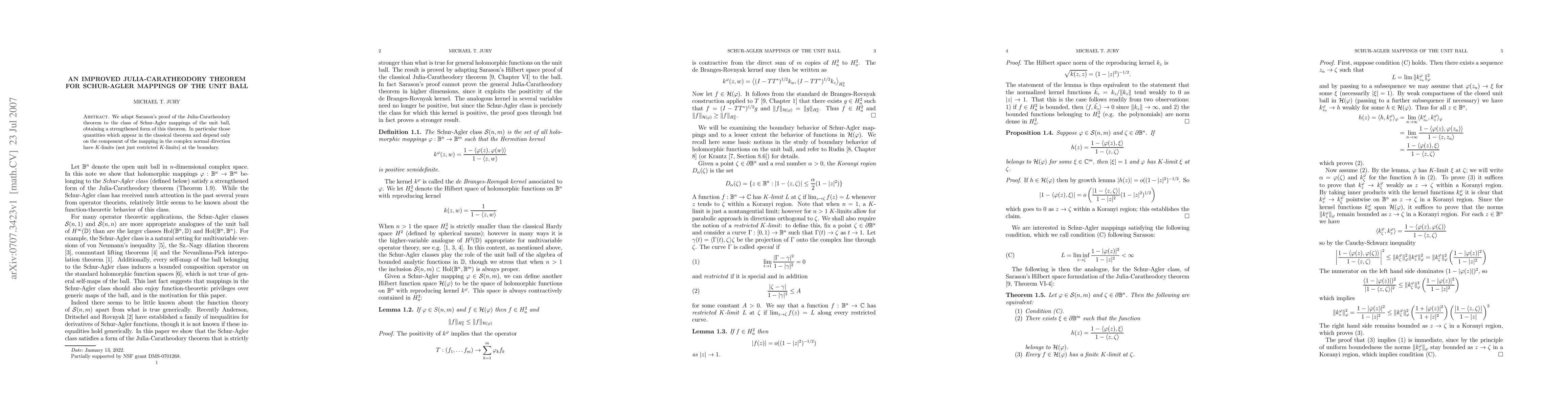 Summary: This paper strengthens Sarason's Julia-Caratheodory theorem for Schur-Agler mappings of the unit ball, showing that certain quantities dependent on the mapping's complex normal component have K-limits at the boundary, not just restricted K-limits.