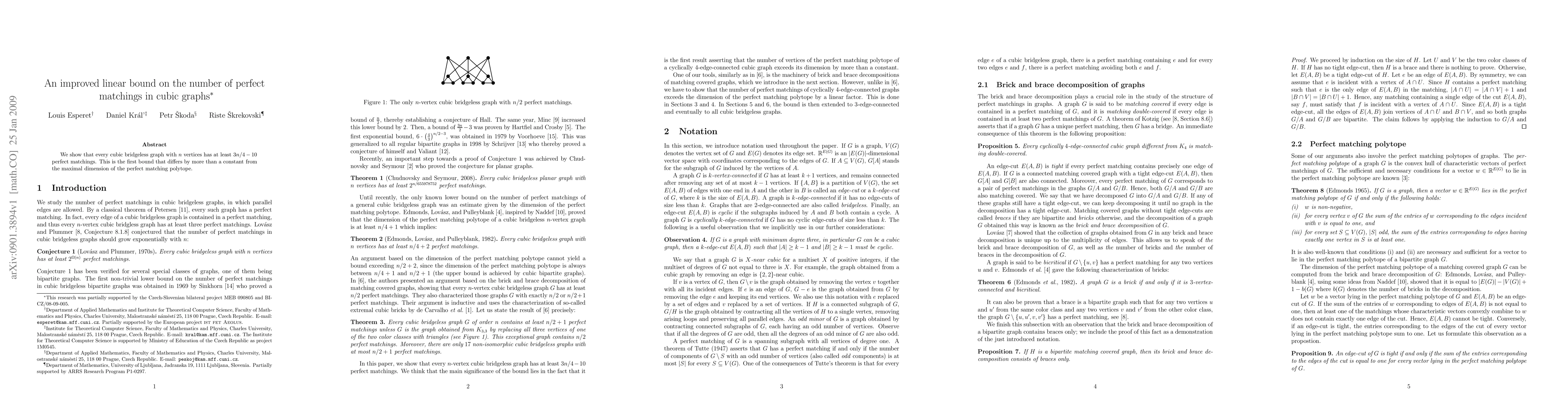 Summary: This paper establishes an improved linear lower bound for the number of perfect matchings in cubic bridgeless graphs, showing each such graph with n vertices contains at least 3n/4-10 perfect matchings, significantly surpassing previous constant bounds.