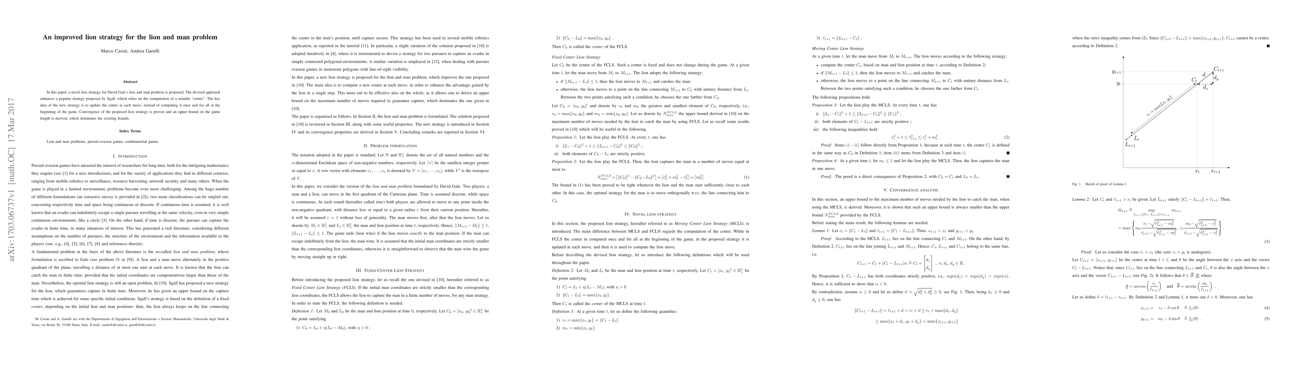 This paper proposes an improved lion strategy for David Gale's lion and man problem, updating the center at each move instead of a single initial computation, enhancing the existing Sgall strategy. The proposed strategy's convergence is proven and yields a tighter upper bound on the game length.