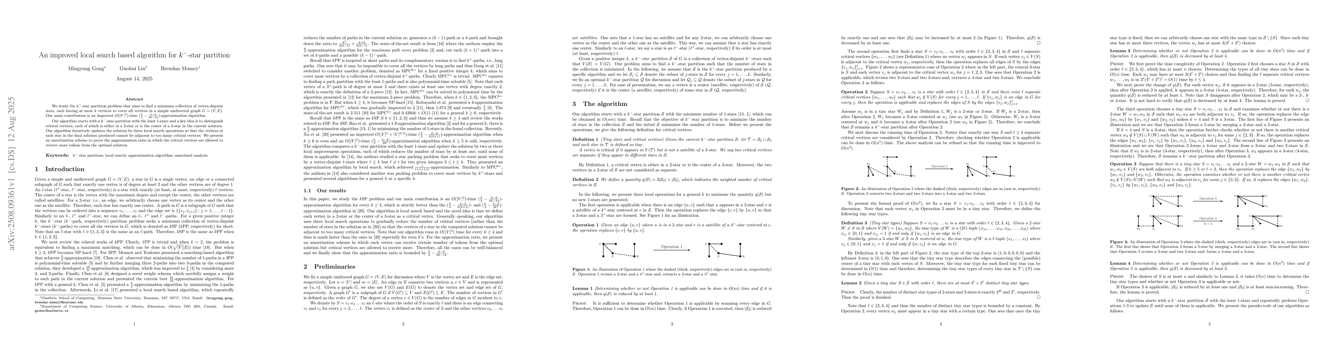 We study the $k^-$-star partition problem that aims to find a minimum collection of vertex-disjoint stars, each having at most $k$ vertices to cover all vertices in a simple undirected graph $G = (V, E)$. Our main contribution is an improved $O(|V|^3)$-time $(\frac k2 - \frac {k-2}{8k-14})$-approximation algorithm. Our algorithm starts with a $k^-$-star partition with the least $1$-stars and a key idea is to distinguish critical vertices, each of which is either in a $2$-star or is the center of a $3$-star in the current solution. Our algorithm iteratively updates the solution by three local search operations so that the vertices in each star in the final solution produced cannot be adjacent to too many critical vertices. We present an amortization scheme to prove the approximation ratio in which the critical vertices are allowed to receive more tokens from the optimal solution.
