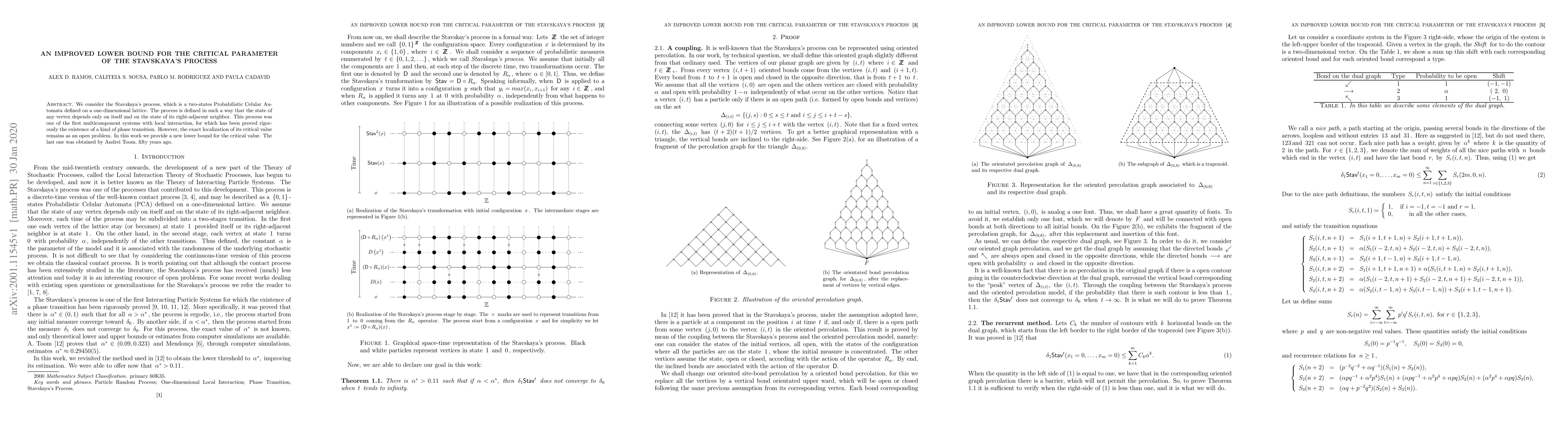 We consider the Stavskaya's process, which is a two-states Probabilistic Celular Automata defined on a one-dimensional lattice. The process is defined in such a way that the state of any vertex depends only on itself and on the state of its right-adjacent neighbor. This process was one of the first multicomponent systems with local interaction, for which has been proved rigorously the existence of a kind of phase transition. However, the exact localization of its critical value remains as an open problem. In this work we provide a new lower bound for the critical value. The last one was obtained by Andrei Toom, fifty years ago.