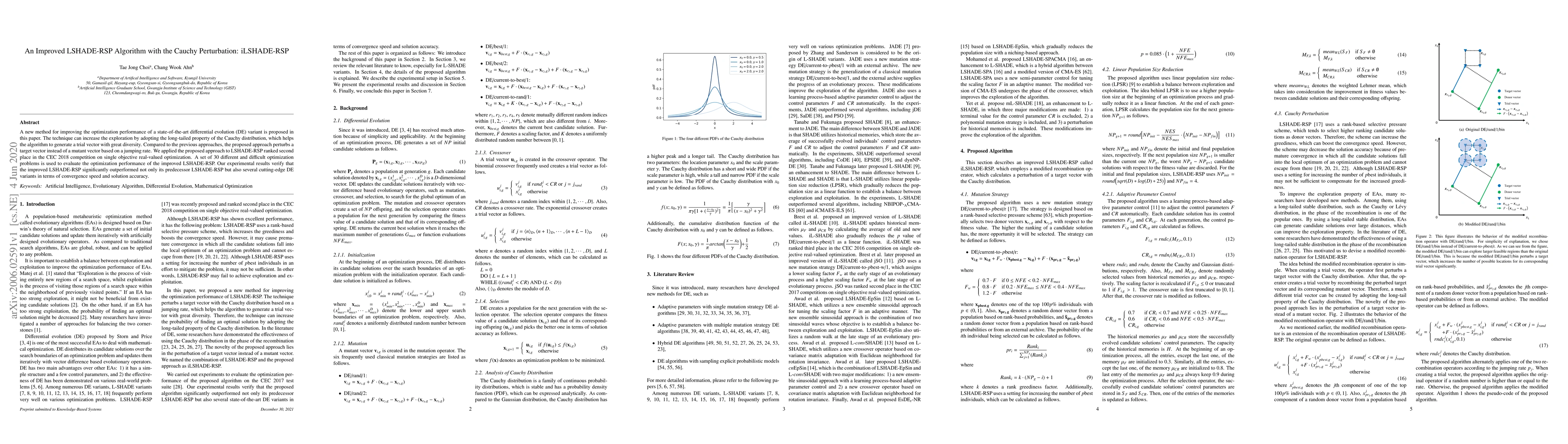 A new method for improving the optimization performance of a state-of-the-art differential evolution (DE) variant is proposed in this paper. The technique can increase the exploration by adopting the long-tailed property of the Cauchy distribution, which helps the algorithm to generate a trial vector with great diversity. Compared to the previous approaches, the proposed approach perturbs a target vector instead of a mutant vector based on a jumping rate. We applied the proposed approach to LSHADE-RSP ranked second place in the CEC 2018 competition on single objective real-valued optimization. A set of 30 different and difficult optimization problems is used to evaluate the optimization performance of the improved LSHADE-RSP. Our experimental results verify that the improved LSHADE-RSP significantly outperformed not only its predecessor LSHADE-RSP but also several cutting-edge DE variants in terms of convergence speed and solution accuracy.