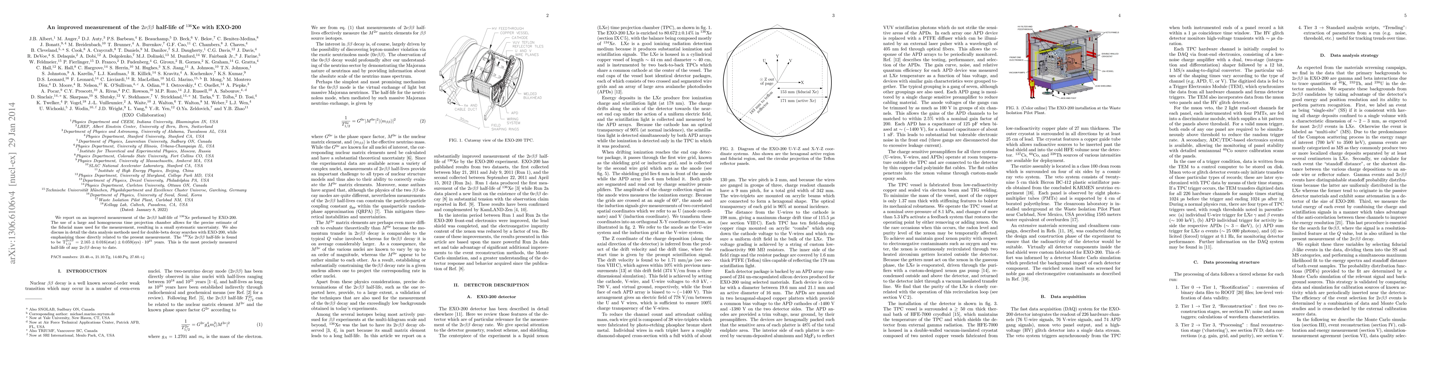 The EXO-200 experiment reports an improved measurement of the 2νββ half-life of Xe-136 at 2.165 ± 0.016 (stat) ± 0.059 (sys) x 10^21 years, utilizing a large, homogeneous time projection chamber to minimize systematic uncertainties. This is the most precise half-life measurement for any 2νββ decay to date.