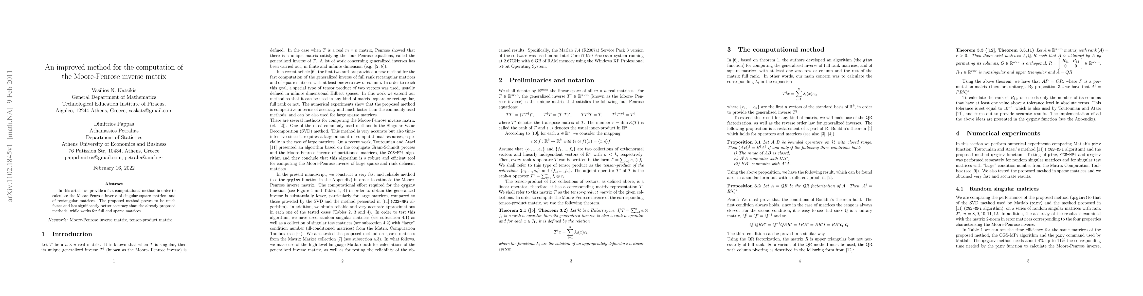 In this article we provide a fast computational method in order to calculate the Moore-Penrose inverse of singular square matrices and of rectangular matrices. The proposed method proves to be much faster and has significantly better accuracy than the already proposed methods, while works for full and sparse matrices.