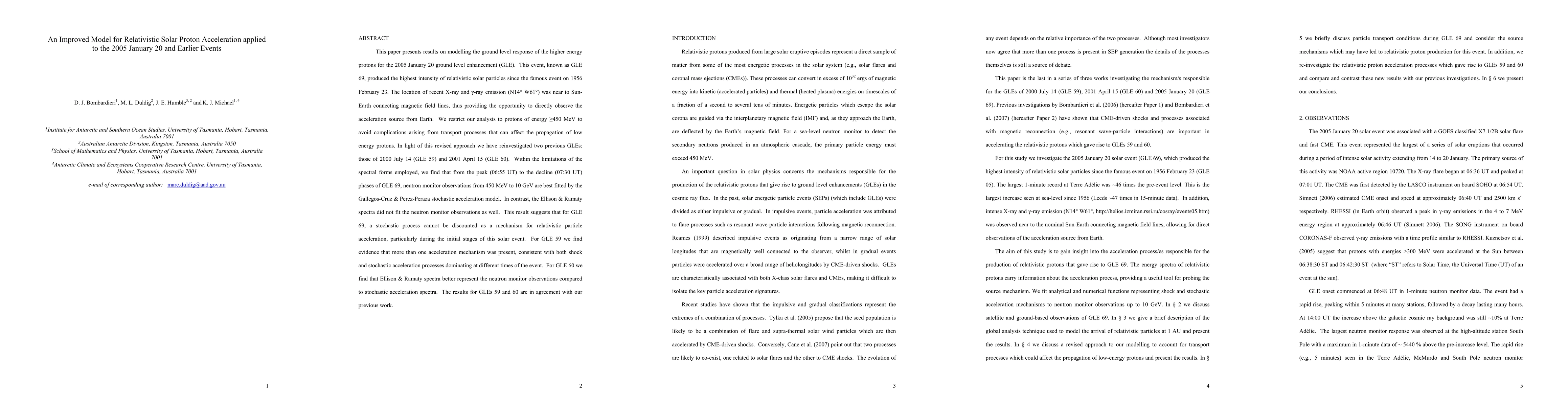 This paper improves a model for relativistic solar proton acceleration, applying it to two intense solar events (GLE 69 and GLEs 59 and 60) and finding evidence for both shock and stochastic acceleration mechanisms in these events.