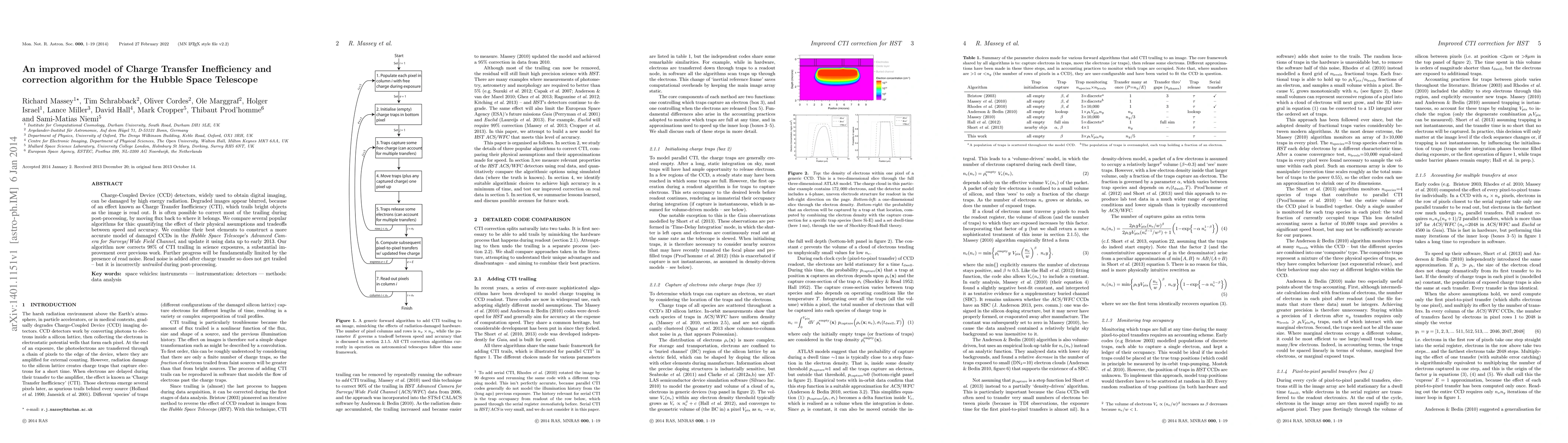 This paper presents an improved model and correction algorithm for Charge Transfer Inefficiency (CTI) in Hubble Space Telescope CCDs, achieving 98% correction of CTI trailing. The new model combines the best elements of existing algorithms, addressing physical assumptions and balancing speed and accuracy.