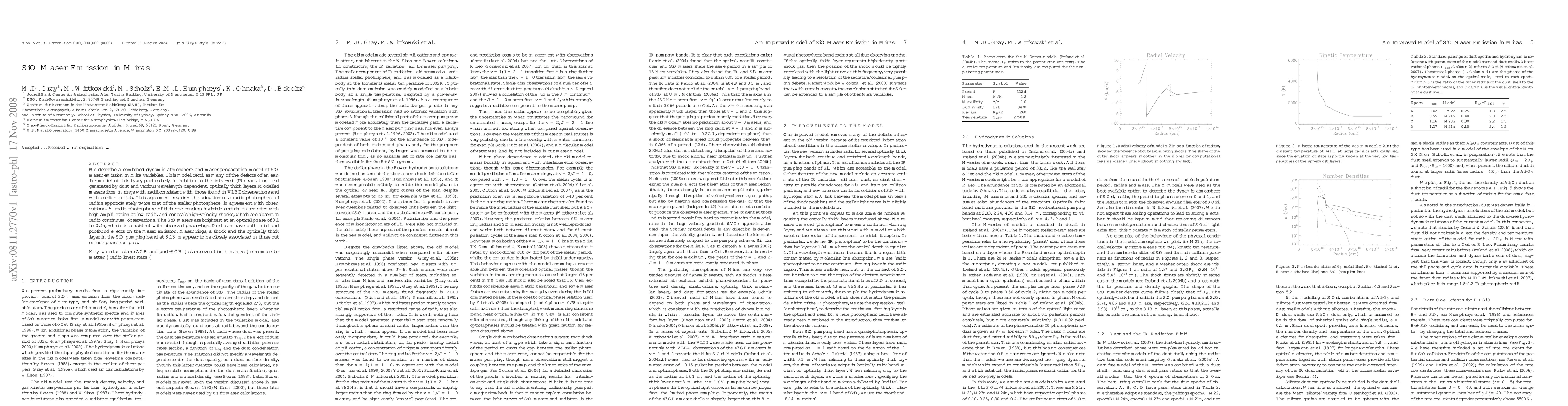 This paper presents a refined model for SiO maser emission in Mira variables, addressing prior model flaws, particularly in relation to IR radiation fields and optically thick layers. The new model aligns with VLBI observations and suggests a radio photosphere twice the size of the stellar photosphere, explaining the absence of certain maser sites and high-velocity shocks in radio continuum observations.