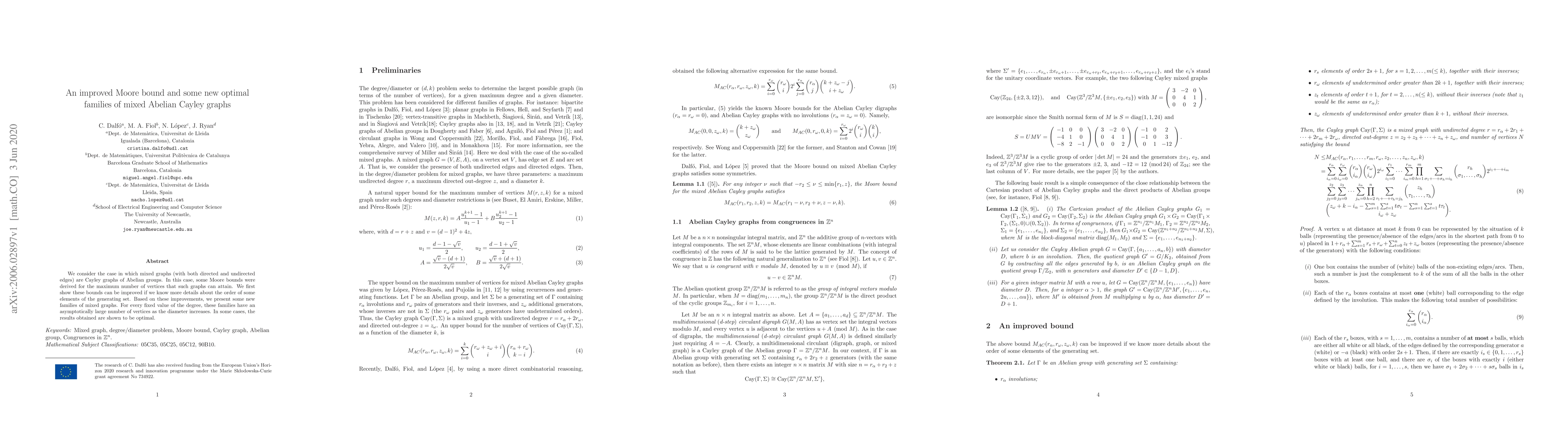 This paper improves Moore bounds for mixed Abelian Cayley graphs by leveraging detailed information about the generating set's elements, leading to new optimal families of mixed graphs with a large number of vertices as the diameter increases. The results are shown to be optimal for certain cases.