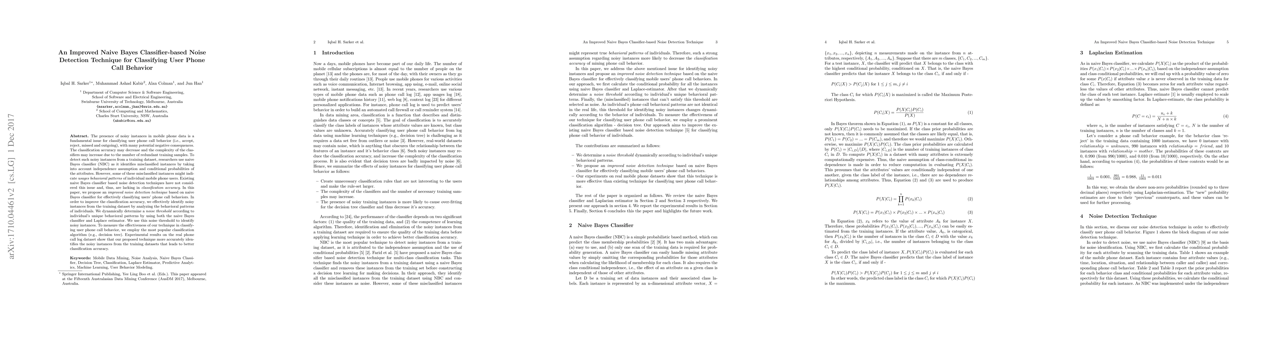 This paper proposes an improved noise detection technique using a naive Bayes classifier to effectively classify user phone call behaviors, achieving better accuracy than existing methods.