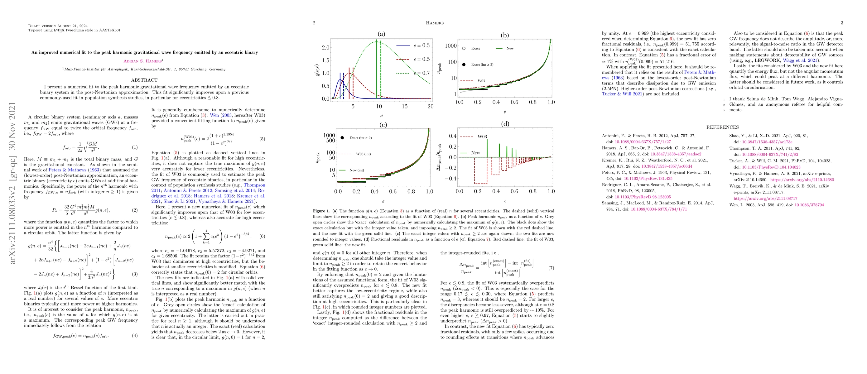 I present a numerical fit to the peak harmonic gravitational wave frequency emitted by an eccentric binary system in the post-Newtonian approximation. This fit significantly improves upon a previous commonly-used fit in population synthesis studies, in particular for eccentricities $\lesssim 0.8$.