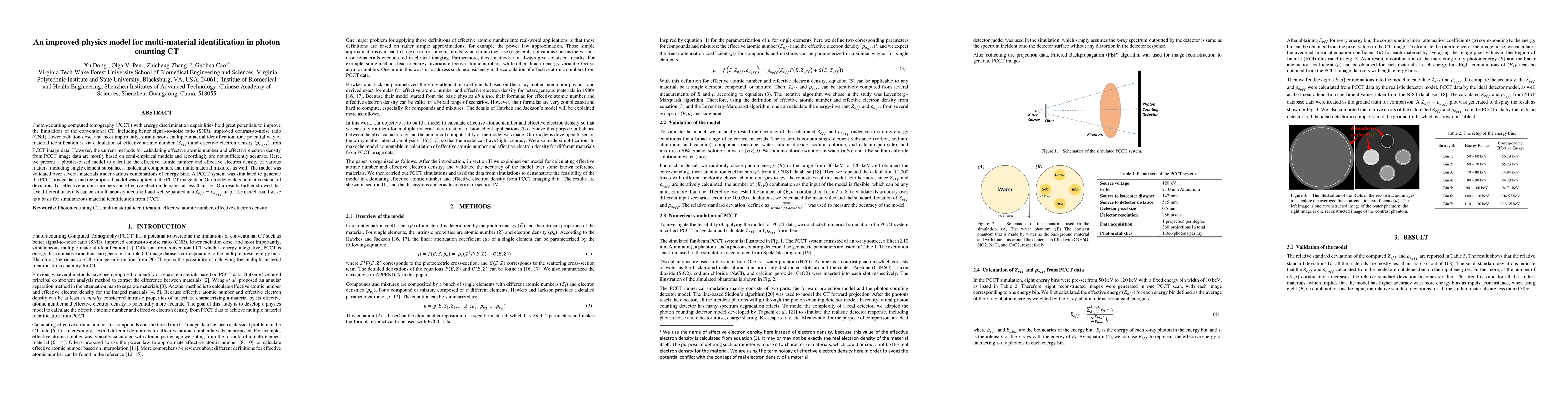 A new physics-based model accurately calculates effective atomic number and electron density from photon-counting CT image data, enabling simultaneous material identification in various materials, including single elements, molecular compounds, and multi-material mixtures.