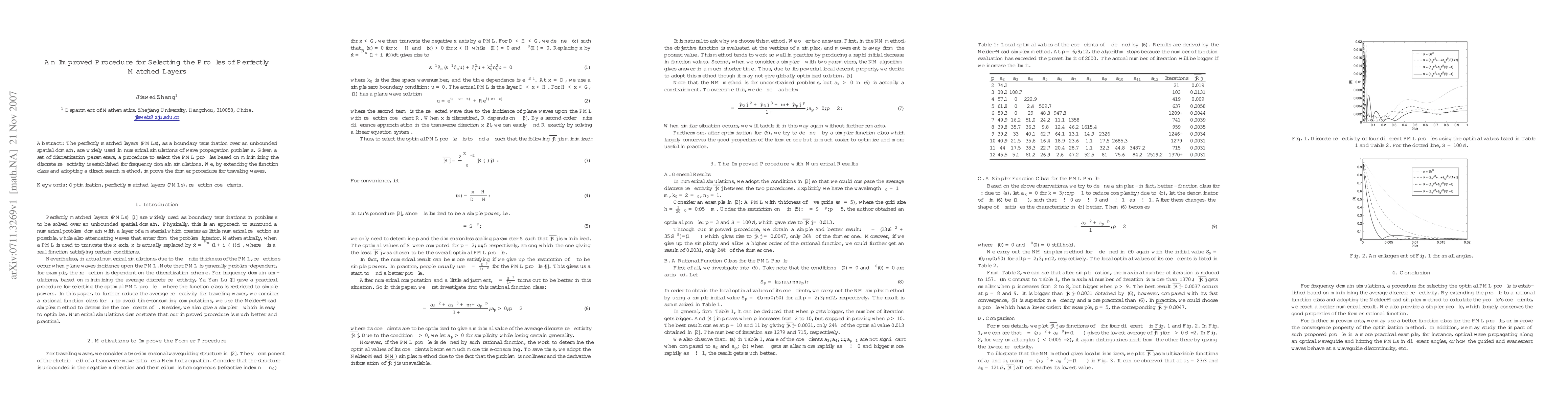 This paper proposes an enhanced method for selecting perfectly matched layer (PML) profiles to minimize discrete reflectivity in frequency domain simulations. The improvement involves extending the function class and employing a direct search method for better performance in traveling wave scenarios.