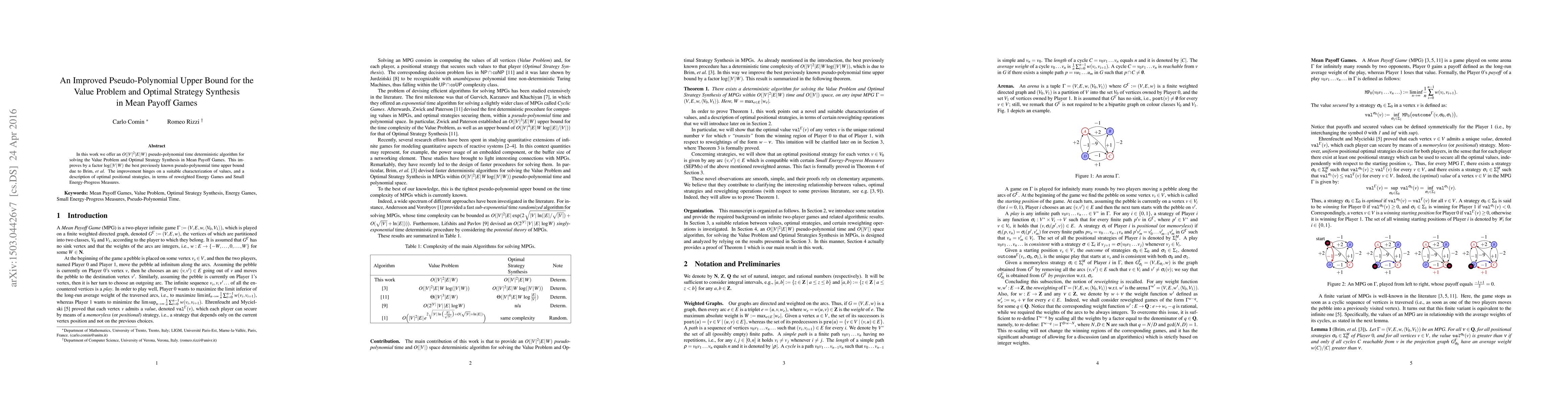 In this work we offer an $O(|V|^2 |E|\, W)$ pseudo-polynomial time deterministic algorithm for solving the Value Problem and Optimal Strategy Synthesis in Mean Payoff Games. This improves by a factor $\log(|V|\, W)$ the best previously known pseudo-polynomial time upper bound due to Brim,~\etal The improvement hinges on a suitable characterization of values, and a description of optimal positional strategies, in terms of reweighted Energy Games and Small Energy-Progress Measures.