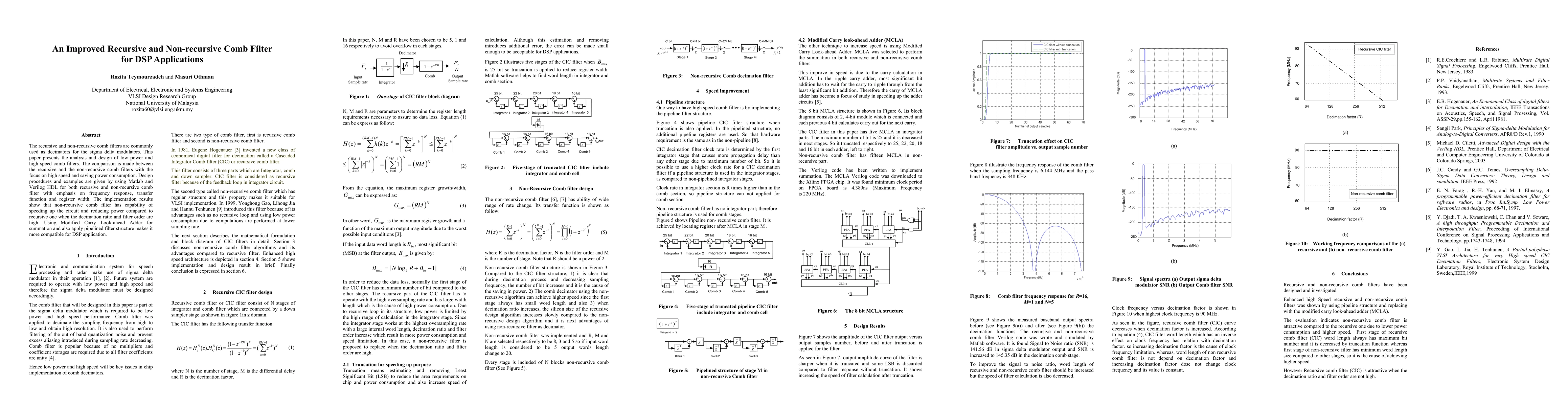This paper improves recursive and non-recursive comb filters for high-speed and low-power decimation in sigma-delta modulators, finding that non-recursive designs offer faster circuitry and reduced power consumption.