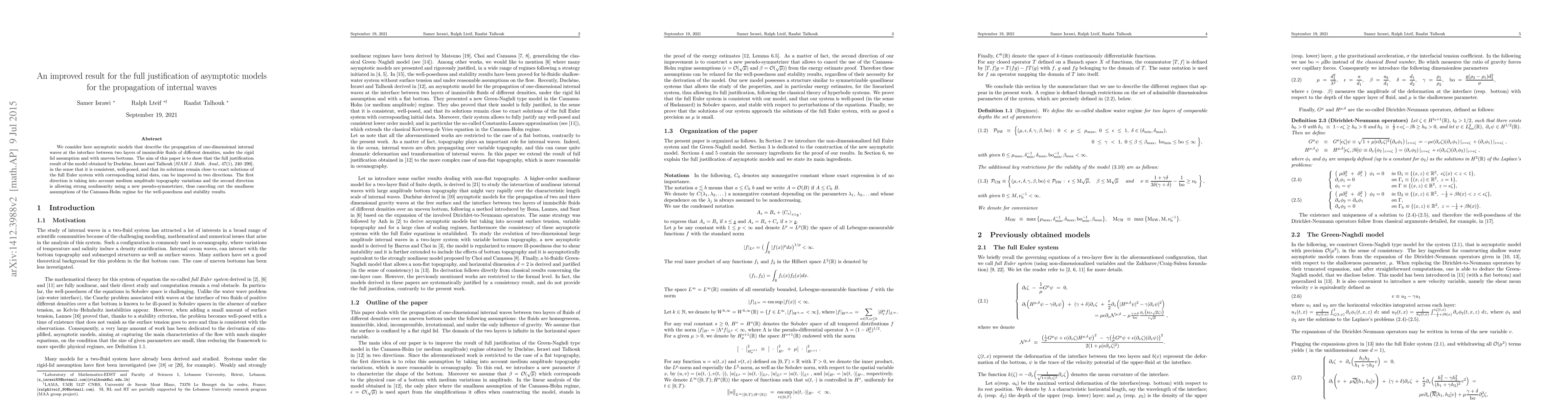 We consider here asymptotic models that describe the propagation of one-dimensional internal waves at the interface between two layers of immiscible fluids of different densities, under the rigid lid assumption and with uneven bottoms. The aim of this paper is to show that the full justification result of the model obtained by Duch\^ene, Israwi and Talhouk [{\em SIAM J. Math. Anal.}, 47(1), 240--290], in the sense that it is consistent, well-posed, and that its solutions remain close to exact solutions of the full Euler system with corresponding initial data, can be improved in two directions. The first direction is taking into account medium amplitude topography variations and the second direction is allowing strong nonlinearity using a new pseudo-symmetrizer, thus canceling out the smallness assumptions of the Camassa-Holm regime for the well-posedness and stability results.