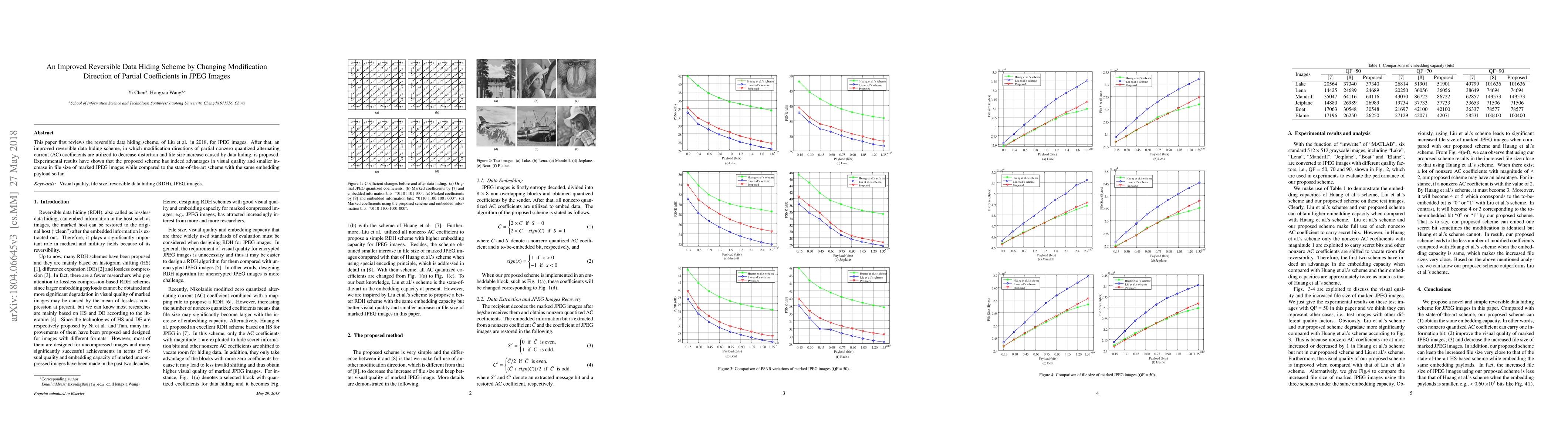 This paper proposes an improved reversible data hiding scheme for JPEG images, utilizing modification directions of partial AC coefficients to reduce distortion and file size increase. Experimental results demonstrate superior visual quality and smaller file size increase compared to existing methods.