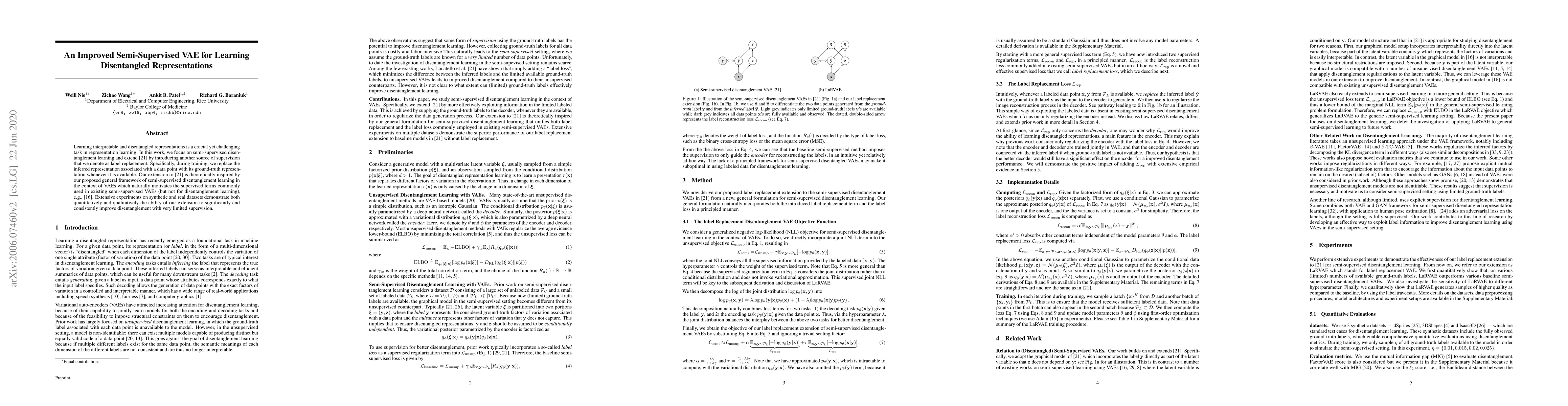This paper proposes an enhanced semi-supervised Variational Autoencoder (VAE) to learn disentangled representations by introducing label replacement supervision, significantly improving representation disentanglement with minimal ground-truth data. Experiments show consistent improvements across synthetic and real datasets.
