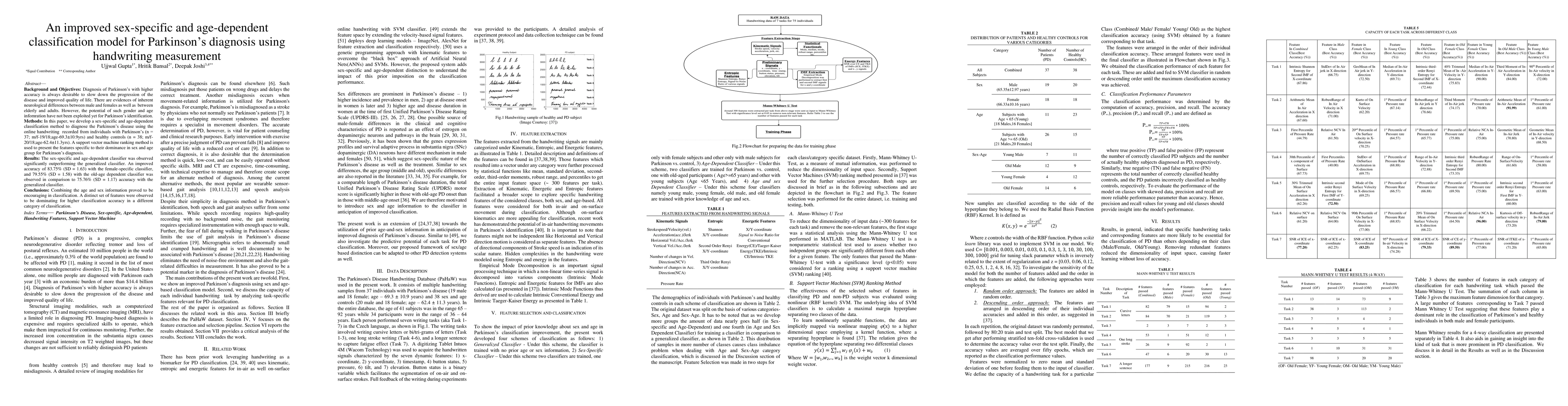 This paper develops a sex-specific and age-dependent classification model for Parkinson's diagnosis using handwriting measurements, achieving higher accuracy than a generalized classifier. The combined model shows promising results, with significant improvements in accuracy for female and older age groups.
