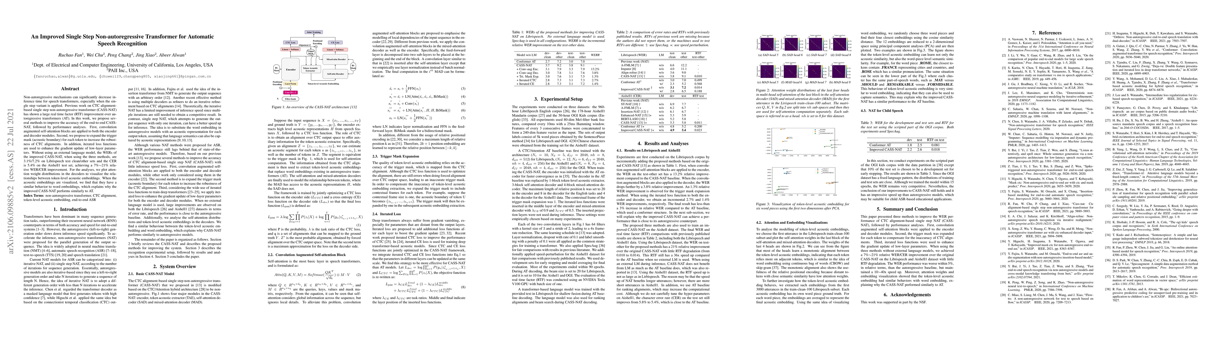 This paper proposes enhancements to the single step non-autoregressive transformer for automatic speech recognition, achieving significant improvements in accuracy without sacrificing real-time inference. Methods include convolution augmented self-attention, expanded trigger masks, and iterated loss functions, resulting in notable reductions in word error rates and character error rates.