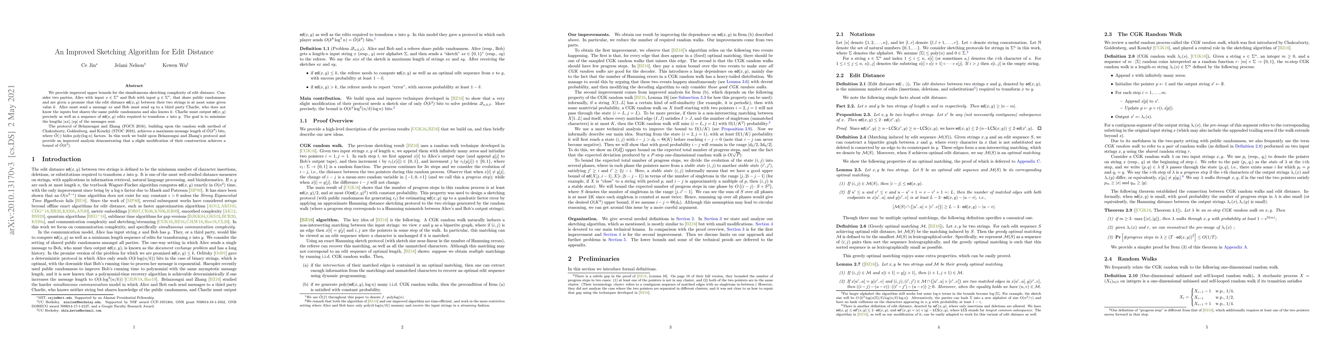 This paper presents an enhanced sketching algorithm for computing edit distance between two strings, improving the message length from $\tilde O(k^8)$ to $\tilde O(k^3)$ bits, thereby reducing the communication complexity in distributed protocols. The improvement builds on prior work by Belazzougui and Zhang and leverages a refined analysis of their protocol.