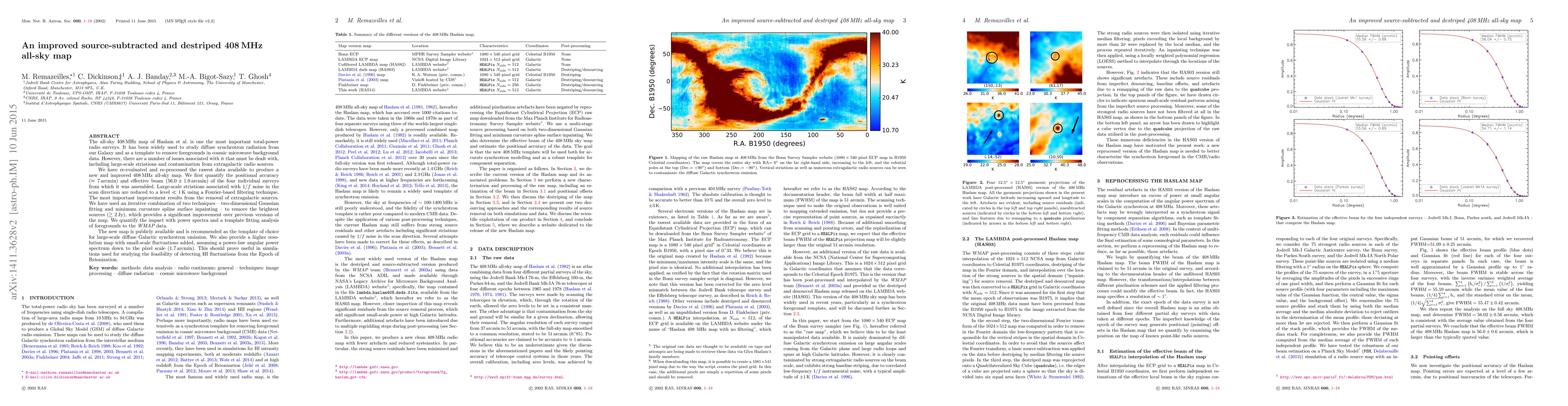 This paper presents a refined 408 MHz all-sky map that improves the original Haslam et al. survey by reducing large-scale striations and removing extragalactic sources using advanced filtering and fitting techniques. The new map is recommended for studying Galactic synchrotron emission and is available for public use.