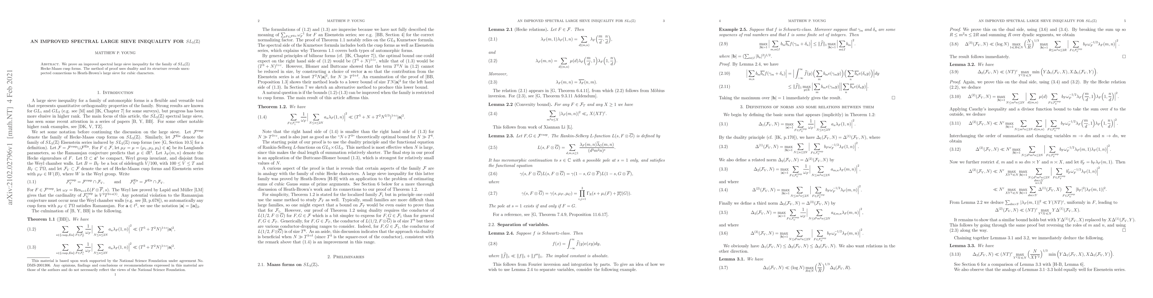 The paper presents an enhanced spectral large sieve inequality specifically for $SL_3(\mathbb{Z})$ Hecke-Maass cusp forms, utilizing a proof technique rooted in duality, which uncovers surprising links to Heath-Brown's large sieve for cubic characters.