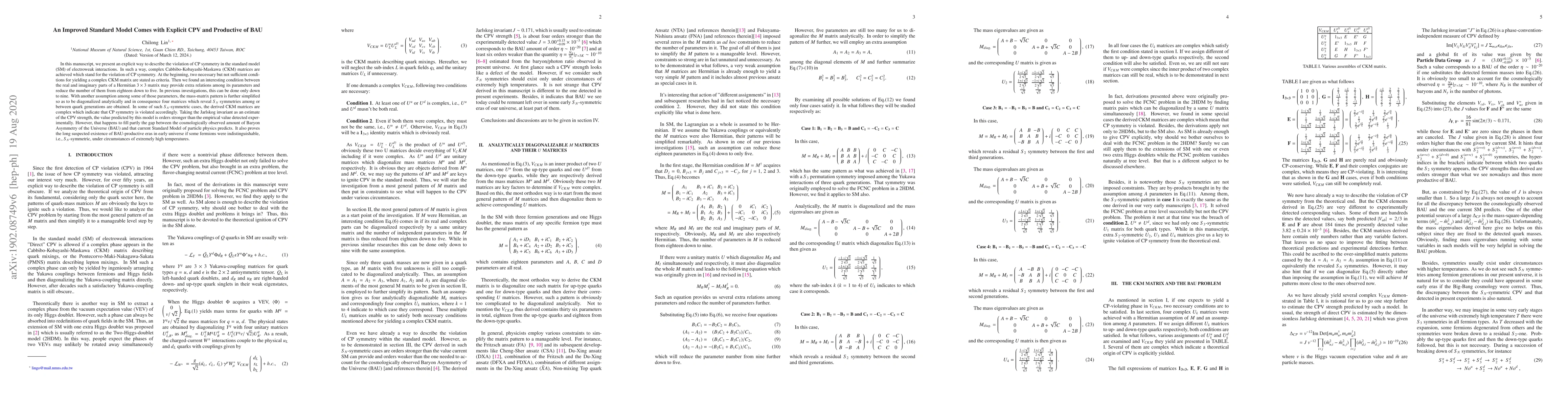 In this manuscript, we present an explicit way to describe the violation of CP symmetry in the standard model (SM) of electroweak interactions. In such a way, complex Cabbibo-Kobayashi-Maskawa (CKM) matrices are achieved which stand for the violation of CP symmetry. At the beginning, two necessary but not sufficient conditions for yielding a complex CKM matrix are stated as criteria. Then we found an interesting condition between the real and imaginary parts of a Hermitian $3\times 3$ matrix may provide extra relations among its parameters and reduce the number of them from eighteen down to five. In previous investigations, this can be done only down to nine. With another assumption among some of those parameters, the mass-matrix pattern is further simplified so as to be diagonalized analytically and in consequence four matrices which reveal $S_N$ symmetries among or between quark generations are obtained. In some of such $S_N$-symmetric cases, the derived CKM matrices are complex which indicate that CP symmetry is violated accordingly. Taking the Jarlskog invariant as an estimate of the CPV strength, the value predicted by this model is orders stronger than the empirical value detected experimentally. However, that happens to fill partly the gap between the cosmologically observed amount of Baryon Asymmetry of the Universe (BAU) and that current Standard Model of particle physics predicts. It also proves the long suspected existence of BAU-productive eras in early universe if some fermions were indistinguishable, i.e., $S_N$-symmetric, under circumstances of extremely high temperatures.