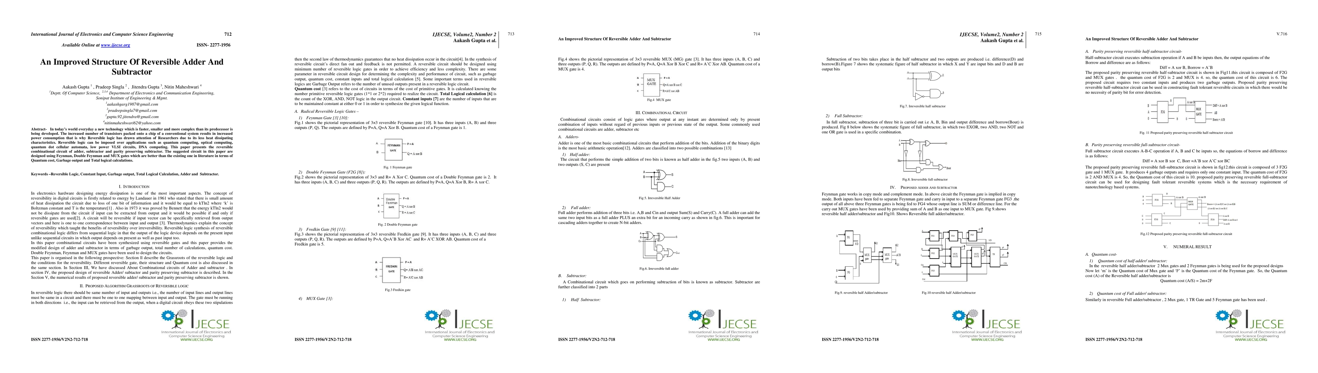 This paper proposes an improved reversible logic structure for adder and subtractor circuits, utilizing Feynman, Double Feynman, and MUX gates to reduce quantum cost, garbage output, and total logical calculations compared to existing methods. The enhanced design is beneficial for applications like quantum computing and low power VLSI circuits.