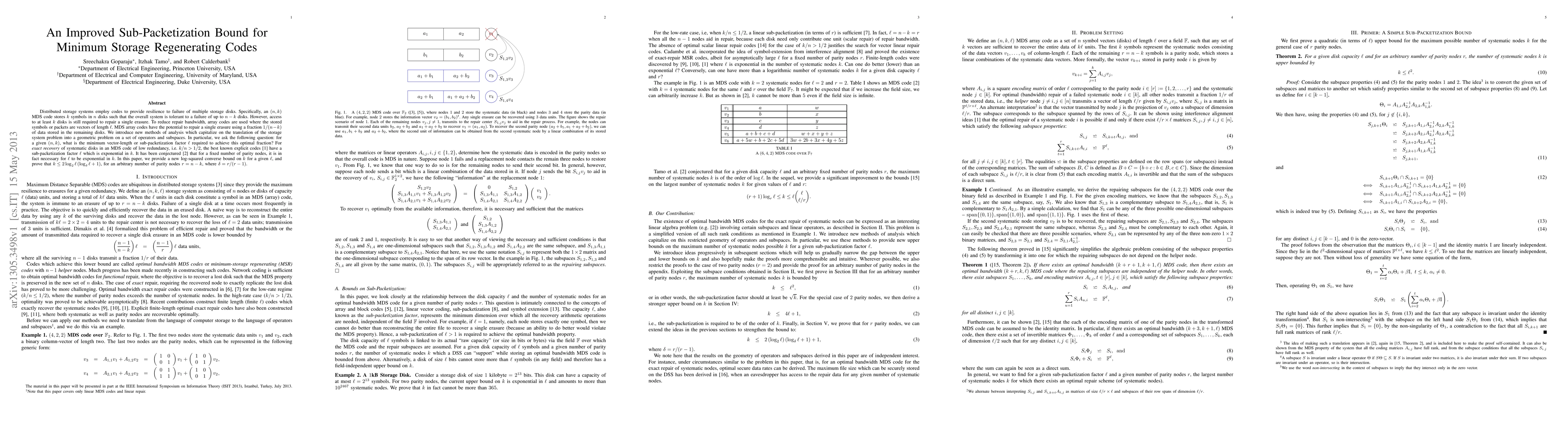 Distributed storage systems employ codes to provide resilience to failure of multiple storage disks. Specifically, an $(n, k)$ MDS code stores $k$ symbols in $n$ disks such that the overall system is tolerant to a failure of up to $n-k$ disks. However, access to at least $k$ disks is still required to repair a single erasure. To reduce repair bandwidth, array codes are used where the stored symbols or packets are vectors of length $\ell$. MDS array codes have the potential to repair a single erasure using a fraction $1/(n-k)$ of data stored in the remaining disks. We introduce new methods of analysis which capitalize on the translation of the storage system problem into a geometric problem on a set of operators and subspaces. In particular, we ask the following question: for a given $(n, k)$, what is the minimum vector-length or sub-packetization factor $\ell$ required to achieve this optimal fraction? For \emph{exact recovery} of systematic disks in an MDS code of low redundancy, i.e. $k/n > 1/2$, the best known explicit codes \cite{WTB12} have a sub-packetization factor $\ell$ which is exponential in $k$. It has been conjectured \cite{TWB12} that for a fixed number of parity nodes, it is in fact necessary for $\ell$ to be exponential in $k$. In this paper, we provide a new log-squared converse bound on $k$ for a given $\ell$, and prove that $k \le 2\log_2\ell\left(\log_{\delta}\ell+1\right)$, for an arbitrary number of parity nodes $r = n-k$, where $\delta = r/(r-1)$.