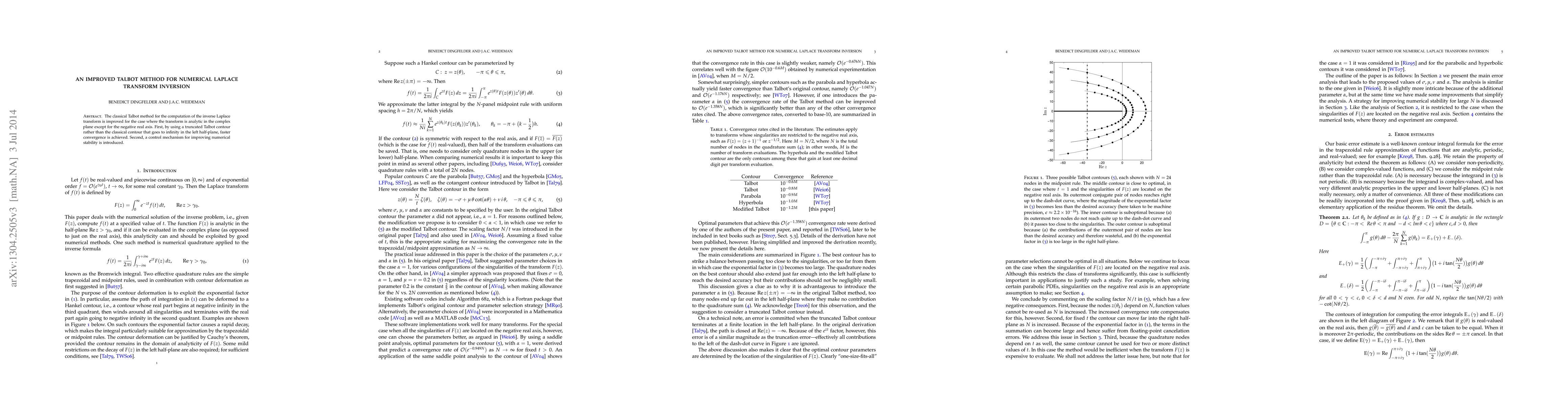 A modified Talbot method is introduced for inverting numerical Laplace transforms with faster convergence using a truncated contour and improved stability control.