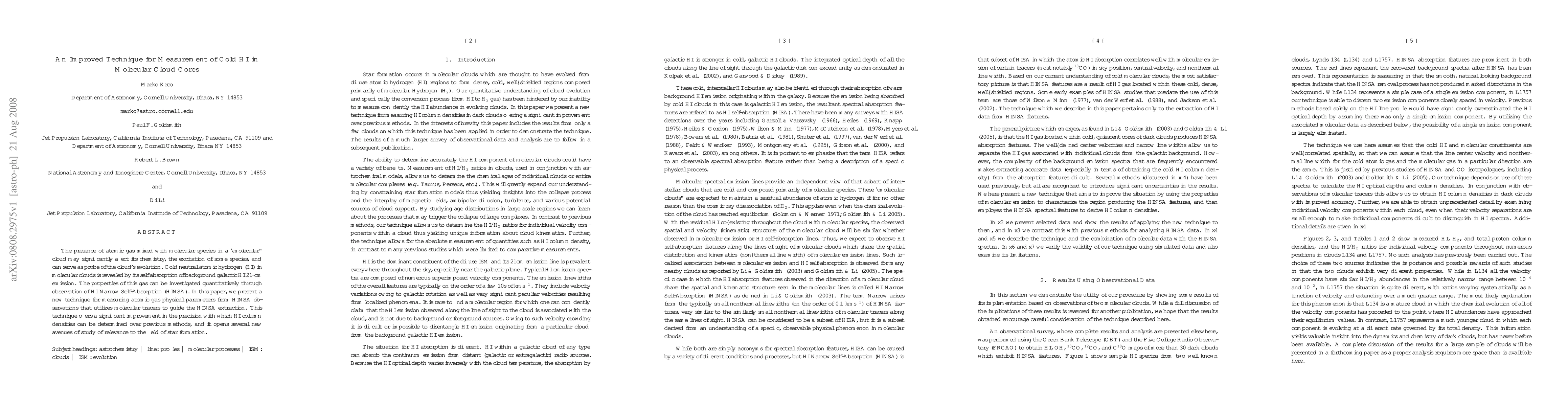 The presence of atomic gas mixed with molecular species in a "molecular" cloud may significantly affect its chemistry, the excitation of some species, and can serve as probe of the cloud's evolution. Cold neutral atomic hydrogen (HI) in molecular clouds is revealed by its self absorption of background galactic HI 21-cm emission. The properties of this gas can be investigated quantitatively through observation of HI Narrow Self-Absorption (HINSA). In this paper, we present a new technique for measuring atomic gas physical parameters from HINSA observations that utilizes molecular tracers to guide the HINSA extraction. This technique offers a significant improvement in the precision with which HI column densities can be determined over previous methods, and it opens several new avenues of study of relevance to the field of star formation.