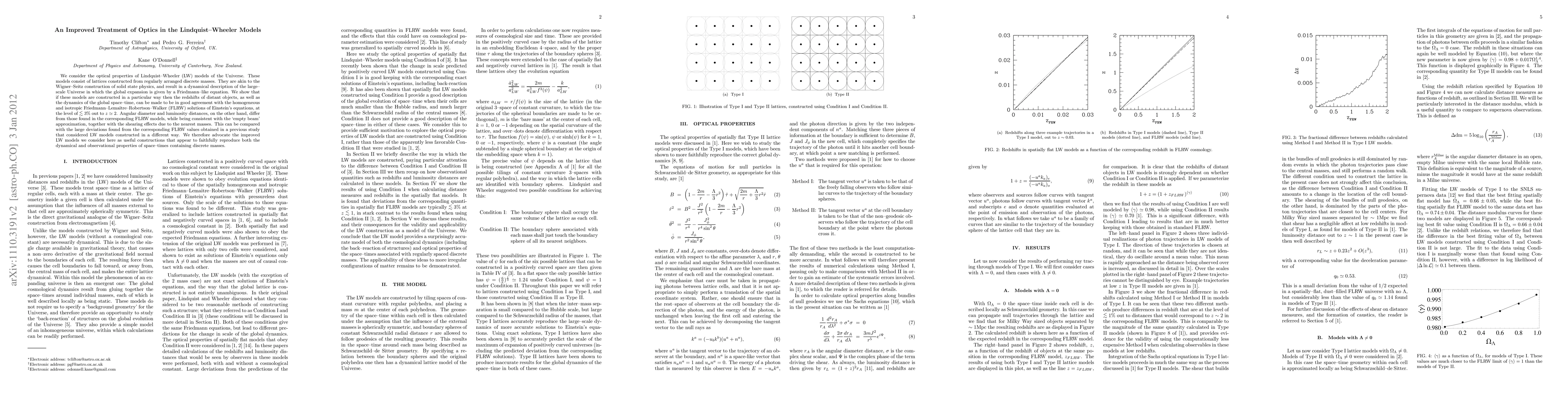 This paper improves the optical properties of Lindquist-Wheeler models by constructing lattices of discrete masses, achieving <3% agreement with FLRW solutions for redshifts and dynamics up to z~2. It shows that while angular diameter and luminosity distances differ, they remain consistent with the 'empty beam' approximation and shearing effects.