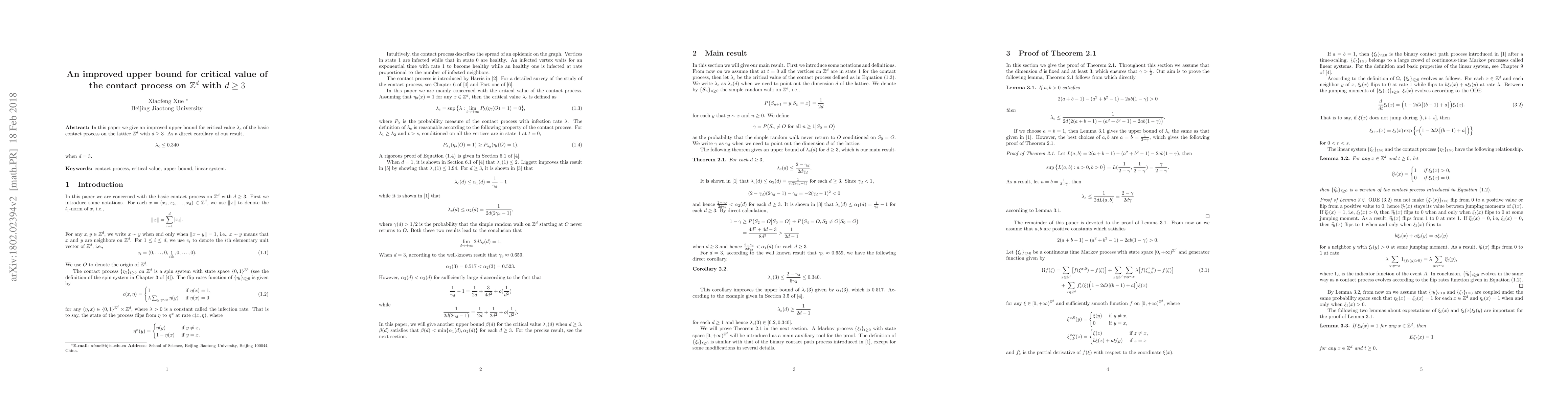 This paper provides an improved upper bound for the critical value of the contact process on $ Z^d$, showing that it is less than or equal to 0.384 when $d=3$.