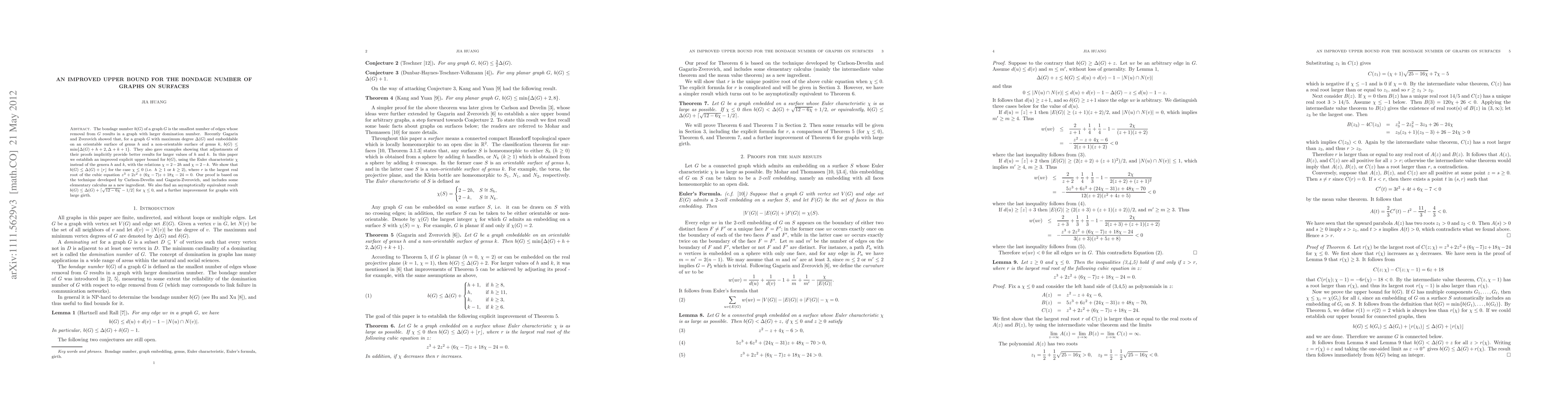 This paper improves an upper bound for the bondage number of graphs on surfaces by using Euler characteristic instead of genera and introducing a new cubic equation to determine the bound, resulting in more accurate results for larger values.