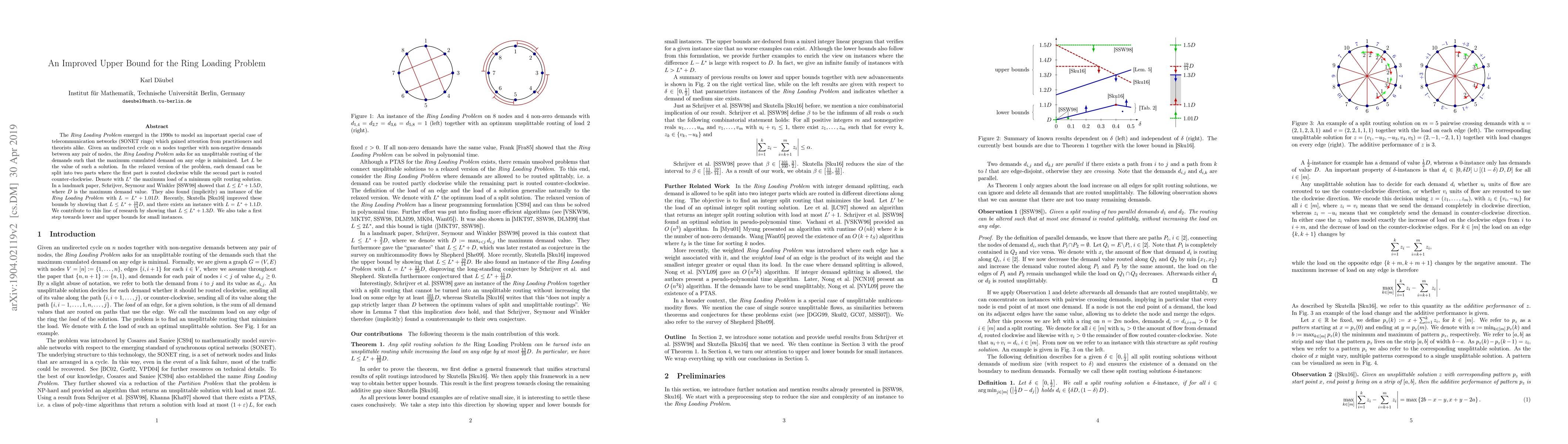 The Ring Loading Problem emerged in the 1990s to model an important special case of telecommunication networks (SONET rings) which gained attention from practitioners and theorists alike. Given an undirected cycle on $n$ nodes together with non-negative demands between any pair of nodes, the Ring Loading Problem asks for an unsplittable routing of the demands such that the maximum cumulated demand on any edge is minimized. Let $L$ be the value of such a solution. In the relaxed version of the problem, each demand can be split into two parts where the first part is routed clockwise while the second part is routed counter-clockwise. Denote with $L^*$ the maximum load of a minimum split routing solution. In a landmark paper, Schrijver, Seymour and Winkler [SSW98] showed that $L \leq L^* + 1.5D$, where $D$ is the maximum demand value. They also found (implicitly) an instance of the Ring Loading Problem with $L = L^* + 1.01D$. Recently, Skutella [Sku16] improved these bounds by showing that $L \leq L^* + \frac{19}{14}D$, and there exists an instance with $L = L^* + 1.1D$. We contribute to this line of research by showing that $L \leq L^* + 1.3D$. We also take a first step towards lower and upper bounds for small instances.