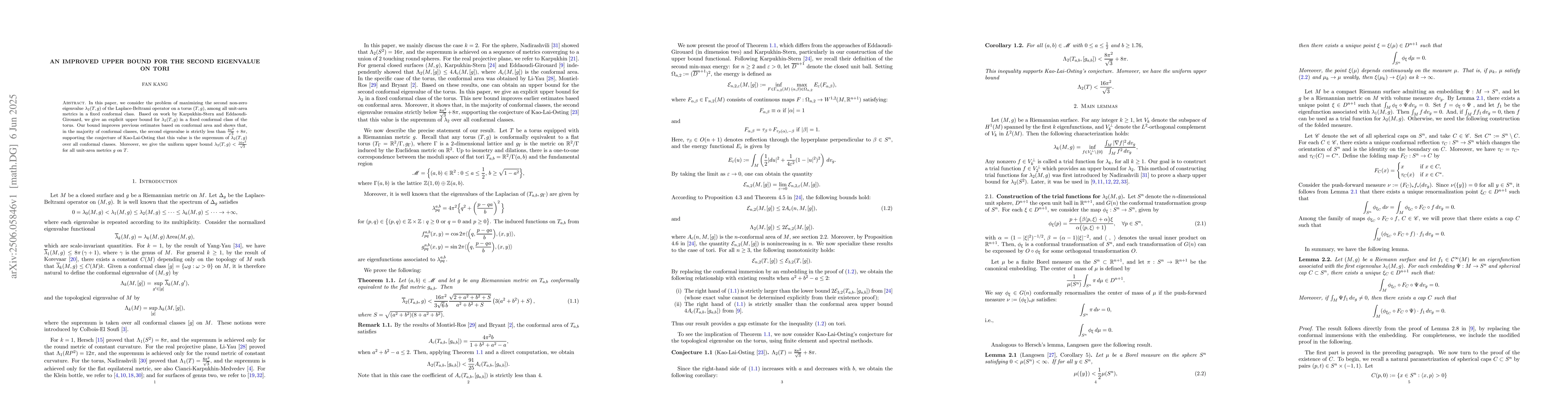 In this paper, we consider the problem of maximizing the second non-zero eigenvalue $\lambda_2(T,g)$ of the Laplace-Beltrami operator on a torus $(T,g)$, among all unit-area metrics in a fixed conformal class. Based on work by Karpukhin-Stern and Eddaoudi-Girouard, we give an explicit upper bound for $\lambda_2(T,g)$ in a fixed conformal class of the torus. Our bound improves previous estimates based on conformal area and shows that, in the majority of conformal classes, the second eigenvalue is strictly less than $\frac{8\pi^2}{\sqrt{3}}+8\pi$, supporting the conjecture of Kao-Lai-Osting that this value is the supremum of $\lambda_2(T,g)$ over all conformal classes. Moreover, we give the uniform upper bound $\lambda_2(T,g)< \frac{16\pi^2}{\sqrt{3}}$ for all unit-area metrics $g$ on $T$.