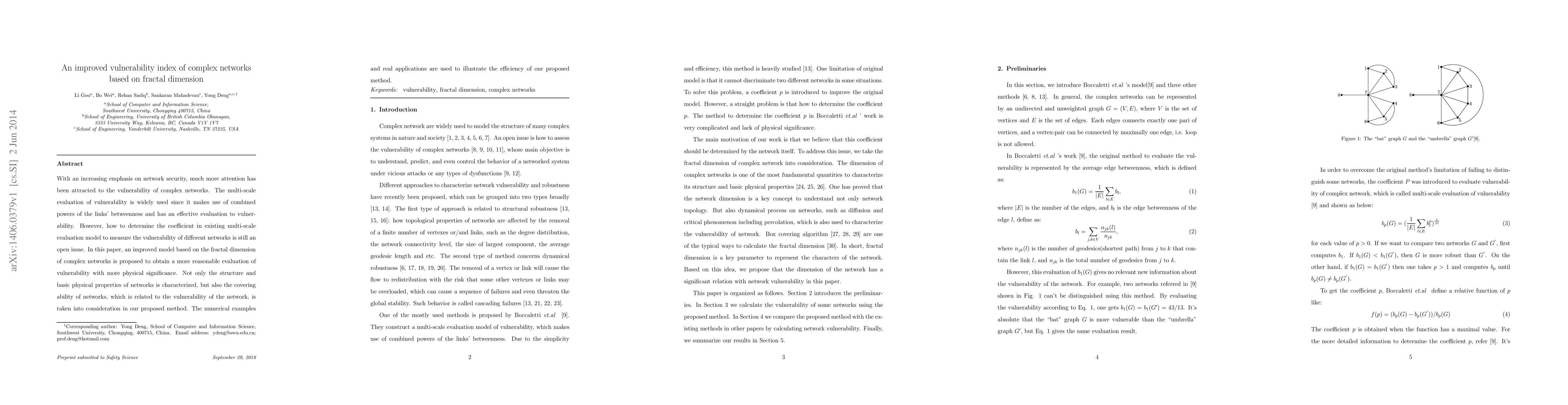 This paper proposes an improved vulnerability index for complex networks based on fractal dimension, aiming to better characterize the structure and physical properties of networks. The new model considers the covering ability of networks, enhancing the evaluation of their vulnerability, and is demonstrated through numerical examples and real-world applications.