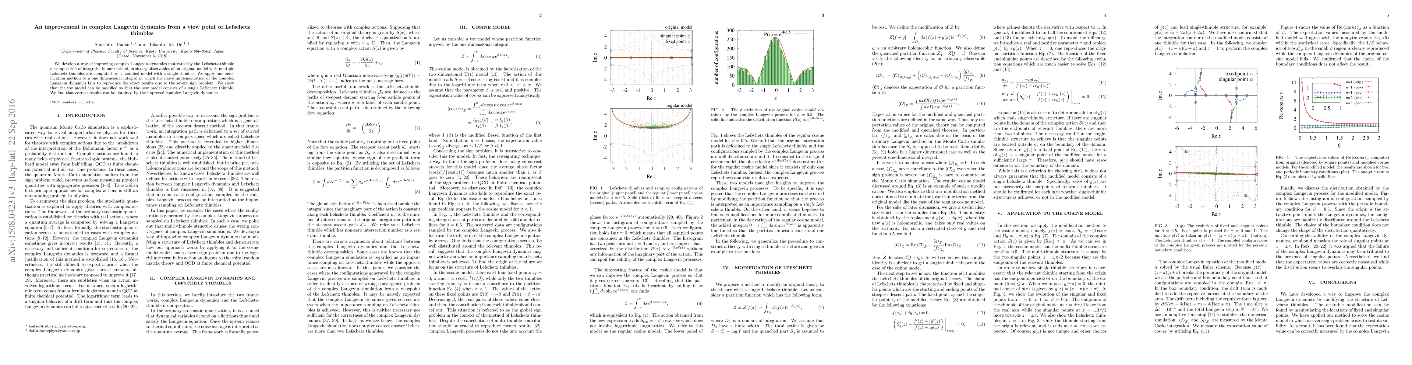This paper proposes an enhancement of complex Langevin dynamics using Lefschetz thimbles to compute observables in models with multiple thimbles. The method successfully modifies a one-dimensional integral model to a single thimble, demonstrating improved accuracy over naive implementations.