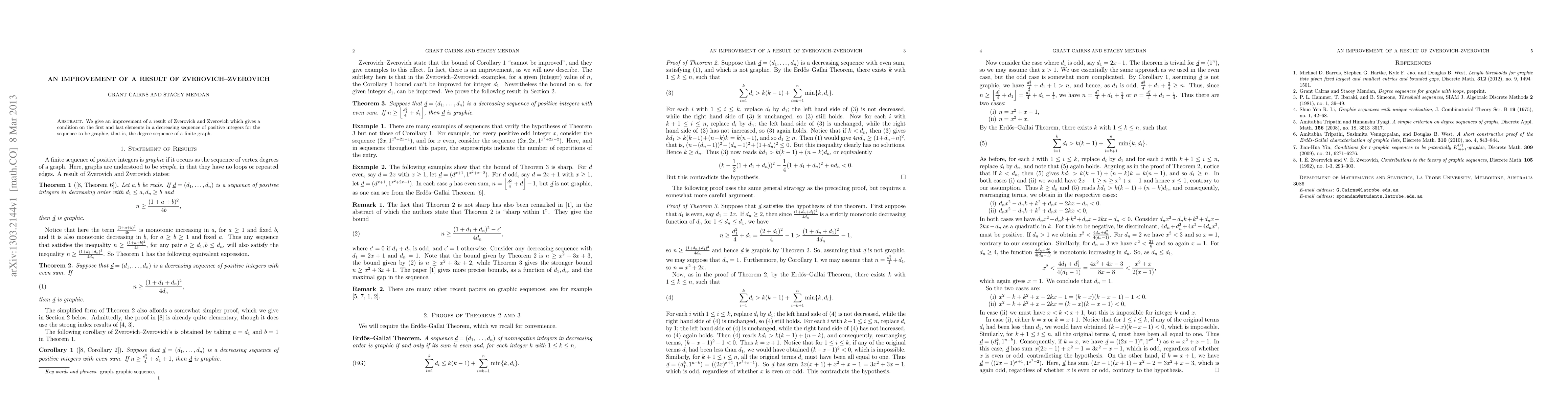 We give an improvement of a result of Zverovich and Zverovich which gives a condition on the first and last elements in a decreasing sequence of positive integers for the sequence to be graphic, that is, the degree sequence of a finite graph.