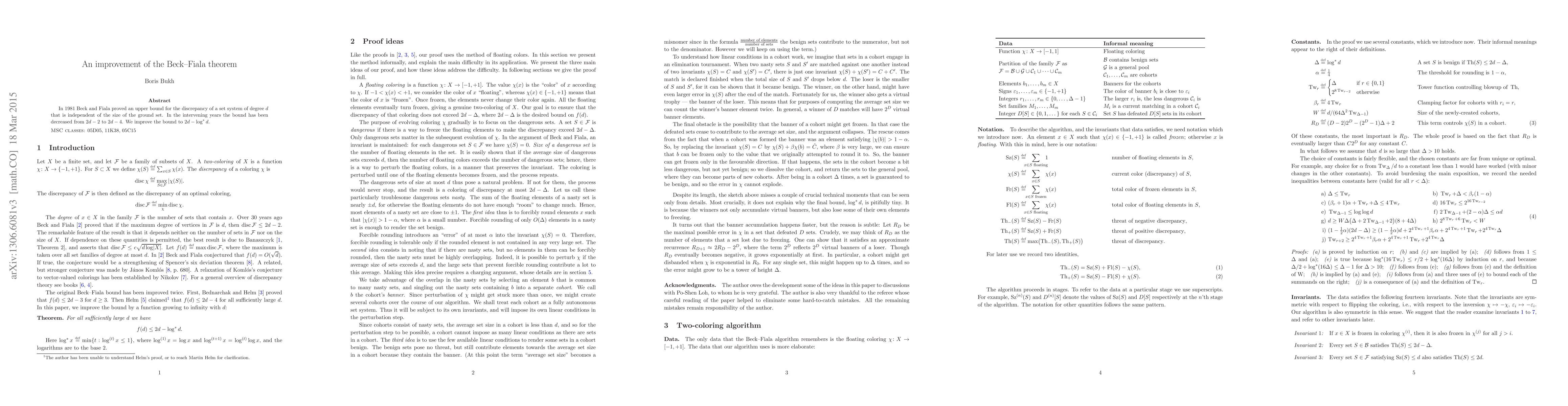 This research improves upon the Beck-Fiala theorem from 1981, which originally provided an upper bound for the discrepancy of a set system. The new bound is tighter, at 2d-log* d, reducing it further from the previously known bound of 2d-4.