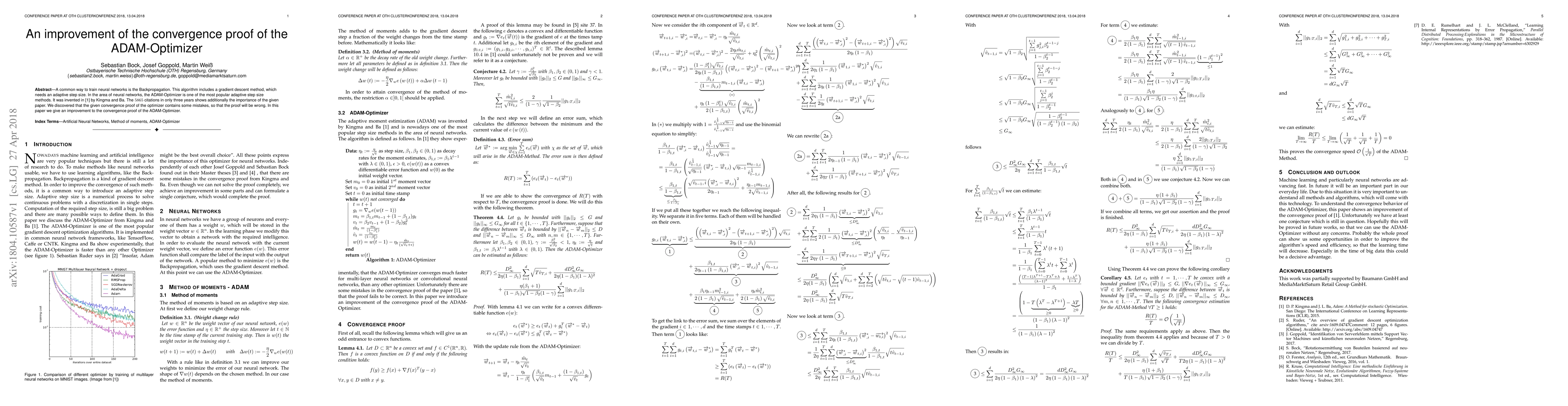 Researchers identified errors in the convergence proof of ADAM-Optimizer, a popular adaptive step size method used to train neural networks, and provided an improvement to correct these mistakes.